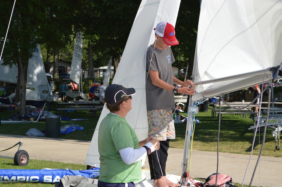 Anyone who followed the event will already know that the results were dominated by Raul Rios/Henry Dumke, who won five races. (Their other two finishes were thirds.) Shoreside, however, was a bit more egalitarian. The local fleet members (most of whom are from Omaha, Nebraska, about 3 hours away) shared information about places to eat and showed us how to drive a Snipe around on a trailer with the mast up. The San Diego and Florida sailors put together an impromptu tuning/sailing clinic on Thursday morning, once it was clear that the predicted morning breeze would not materialize. And Snipe sailors from across the country had a chance to meet new friends, catch up with old ones, and admire various generations of Snipes, all without leaving the well-shaded Yacht Club lawn. Snipe Camp, at its finest.