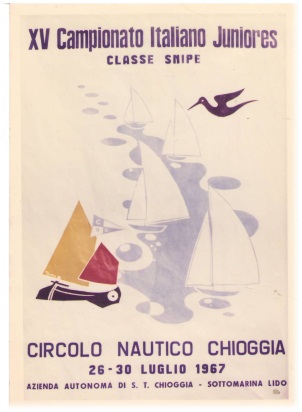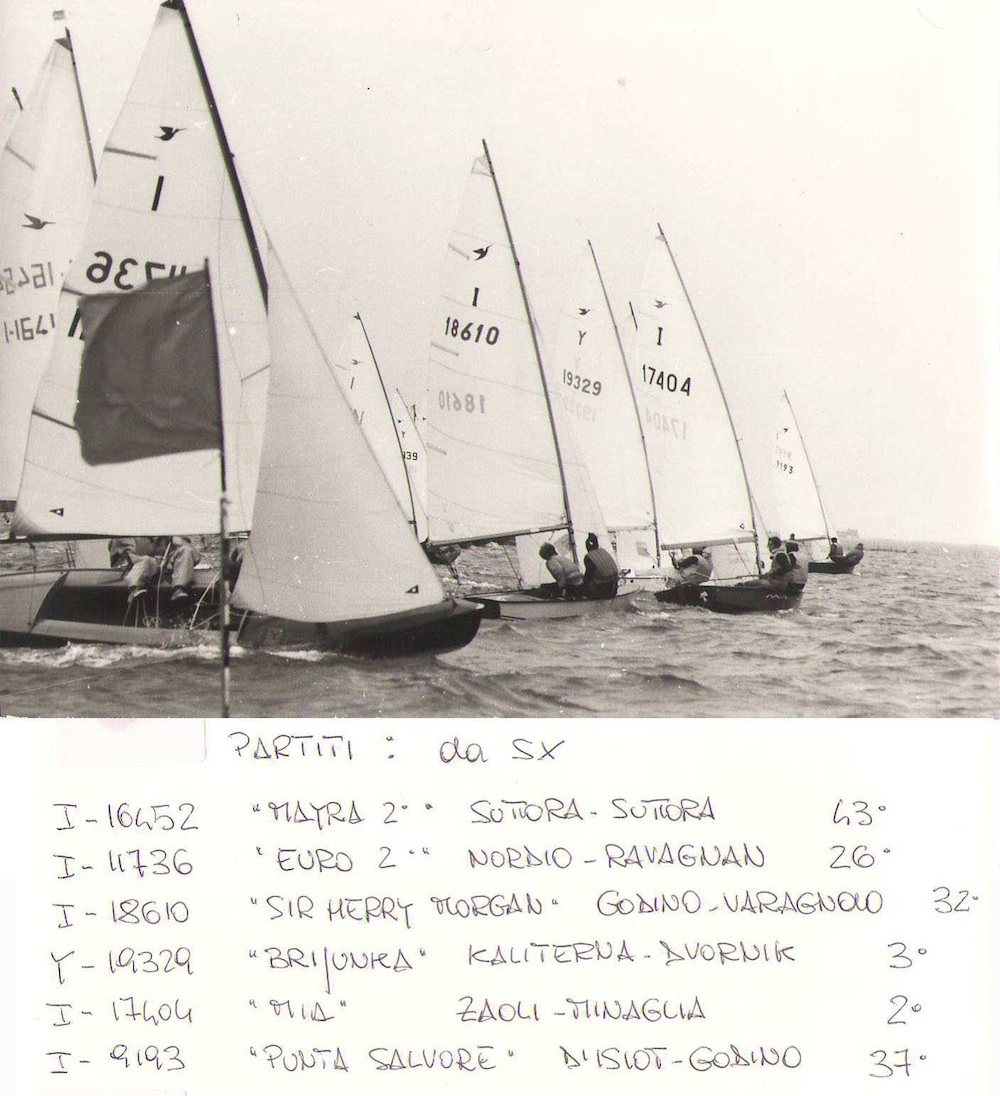 bannerChioggia hosted the Italian Junior Championship in 1967, the last two races of a 1968 Italian Championship sailed in three legs (in Luino, Antignano and Chioggia) and a beautiful Italian Championship in 1972 won by Sergio Morin and Sergio Michel (winners of the first two races) after a thrilling battle with Brezich – Ferin (winners of the 3rd and 4th race) and D’Isiot – Godino (winners of the last two races).