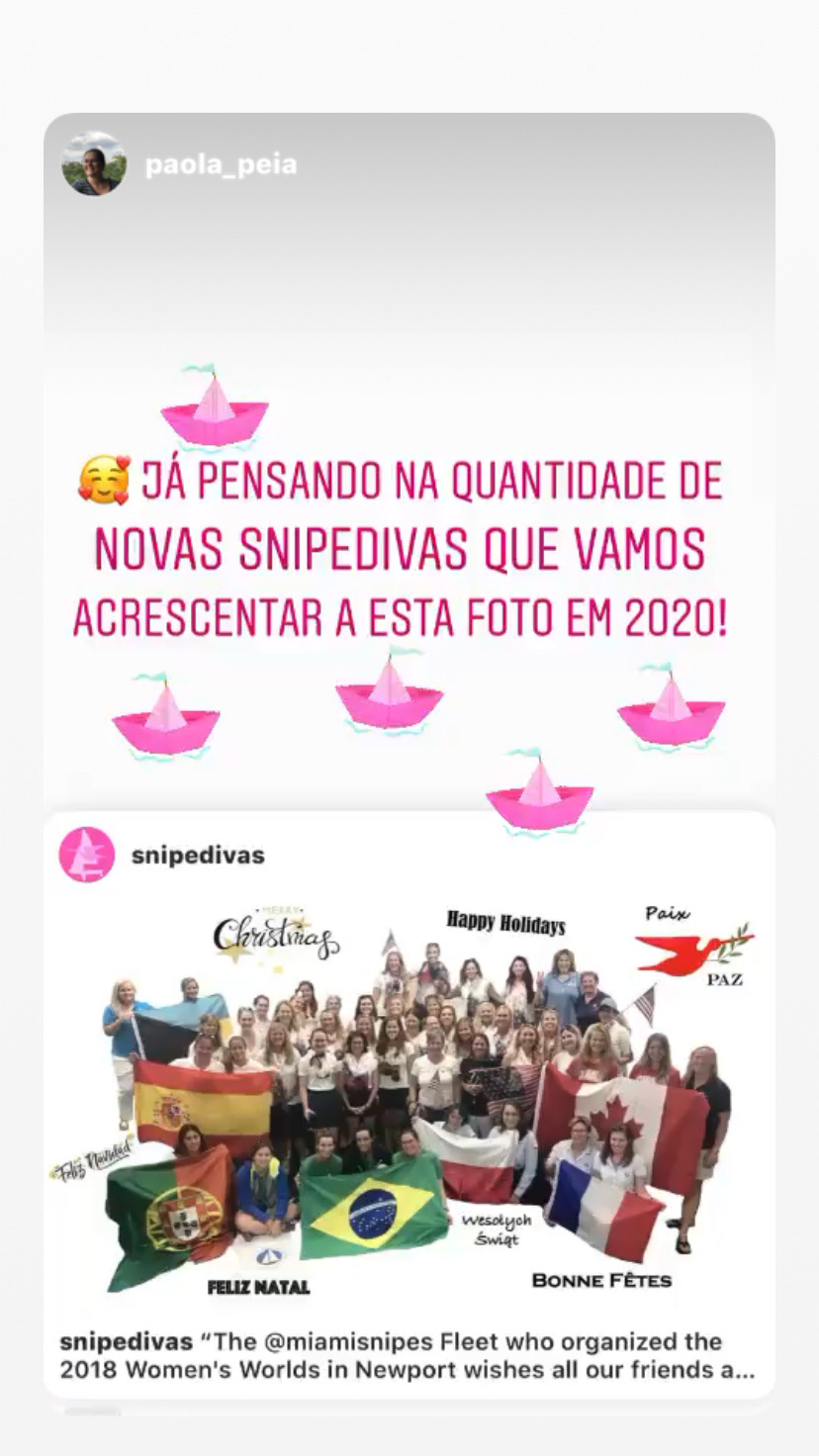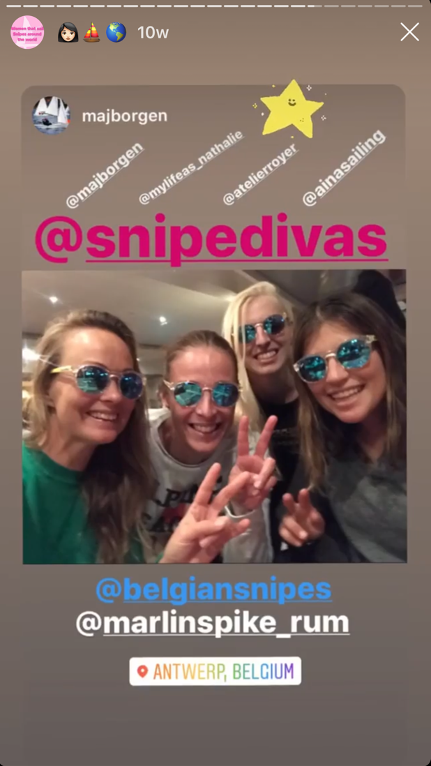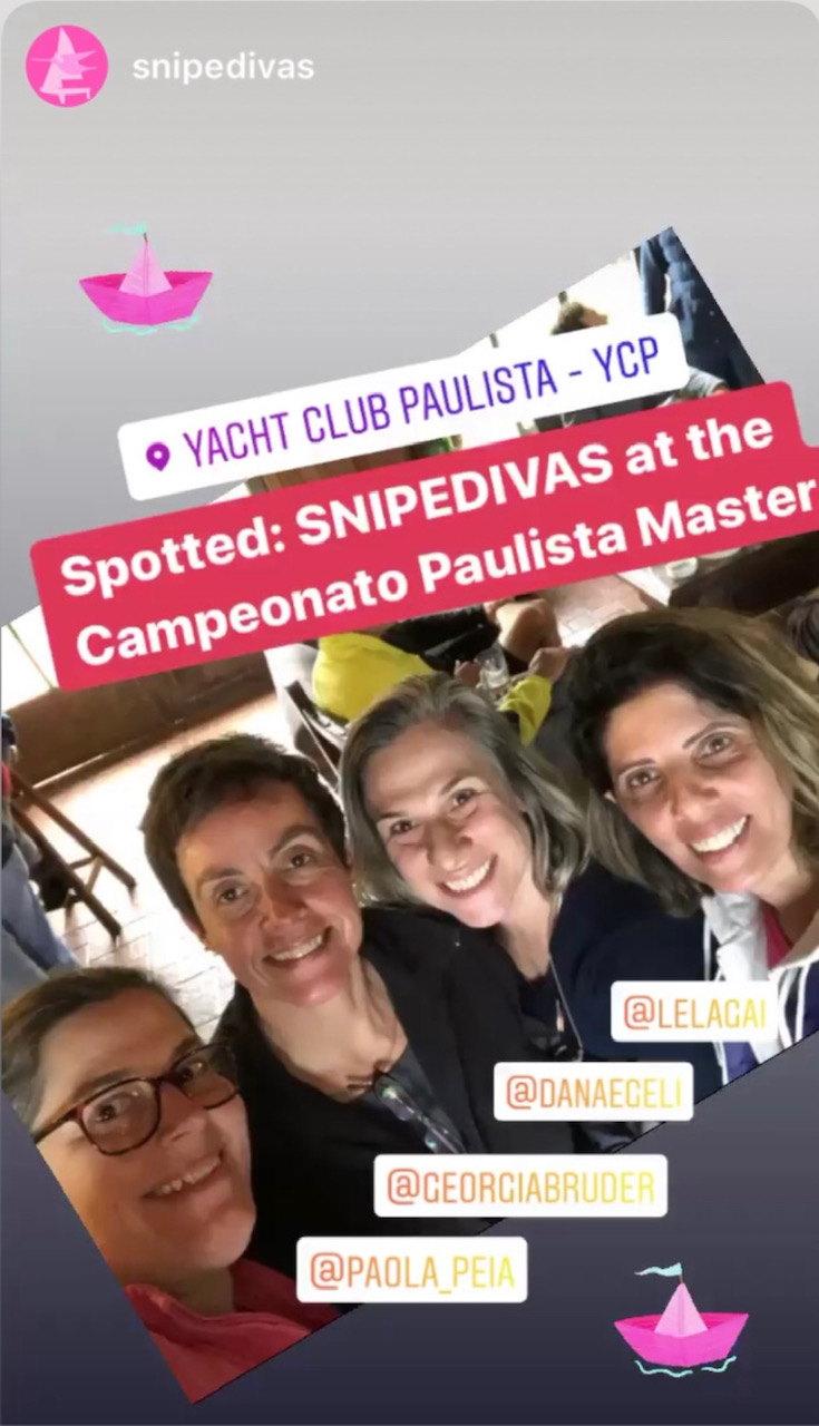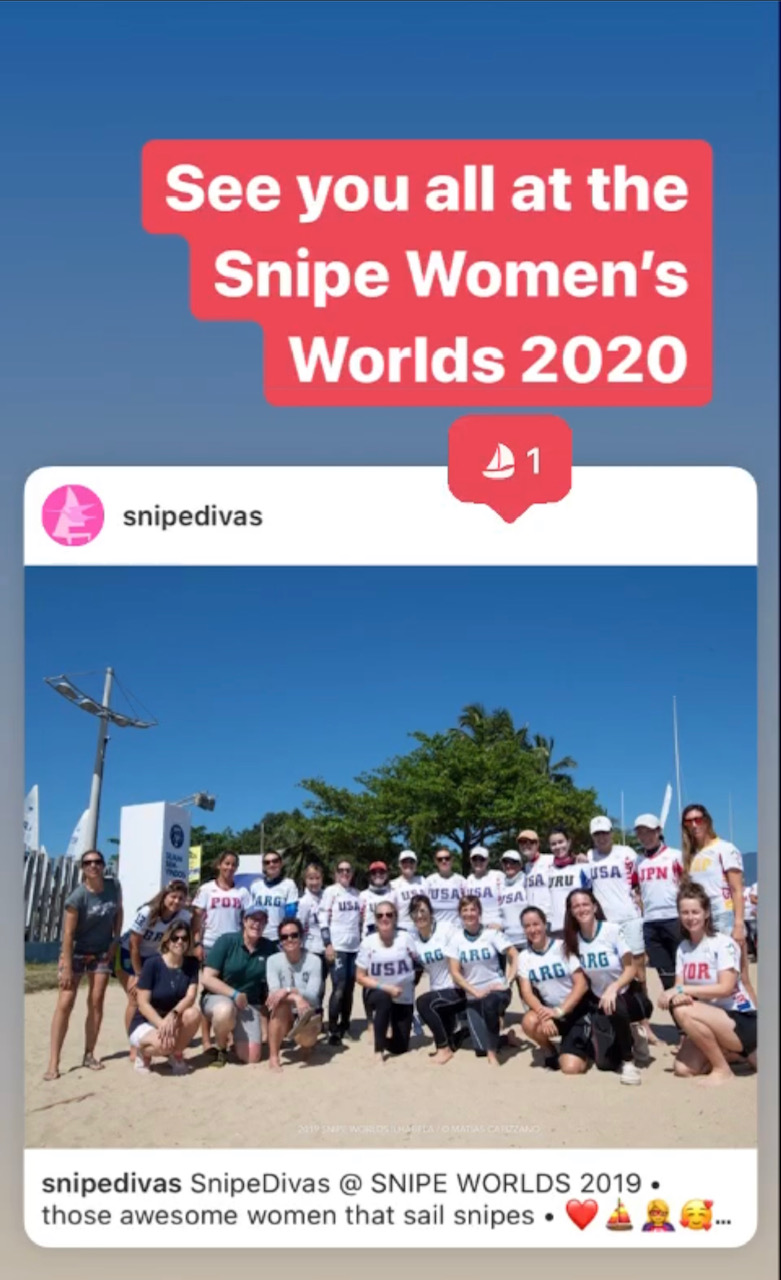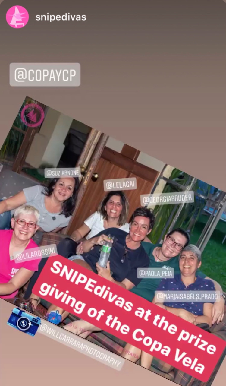 The SnipeDivas always receive the new sailors warmly. We spot them at the racecourse, approach to meet and greet, get their names from the results and immediately add them to our Instagram… What??? Instagram??? Yes, this is an essential part of our success!! It’s all about the continuous following, mentioning and recognizing efforts of women that sail all around the world! If a SnipeDiva sails that weekend, we encourage her to mention us and we repost that she sailed, so that other divas can give a thumbs up that she sailed. The aftermath of all this is that when the worldwide SnipeDivas meet in person they feel like they already know each other; we are a step closer to becoming good friends. Yes, we will race against each other during the regattas, but we will support each other all the way before and after it!