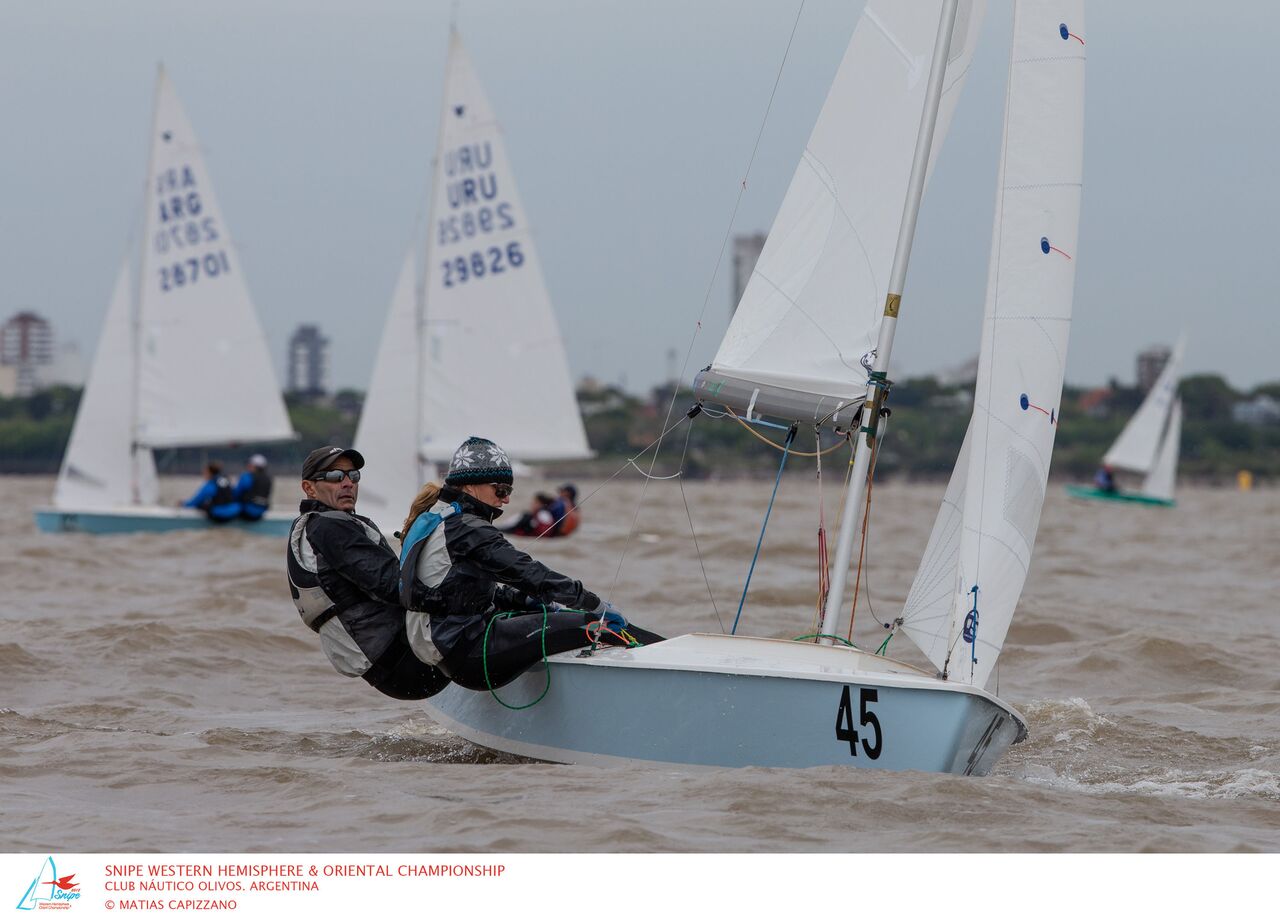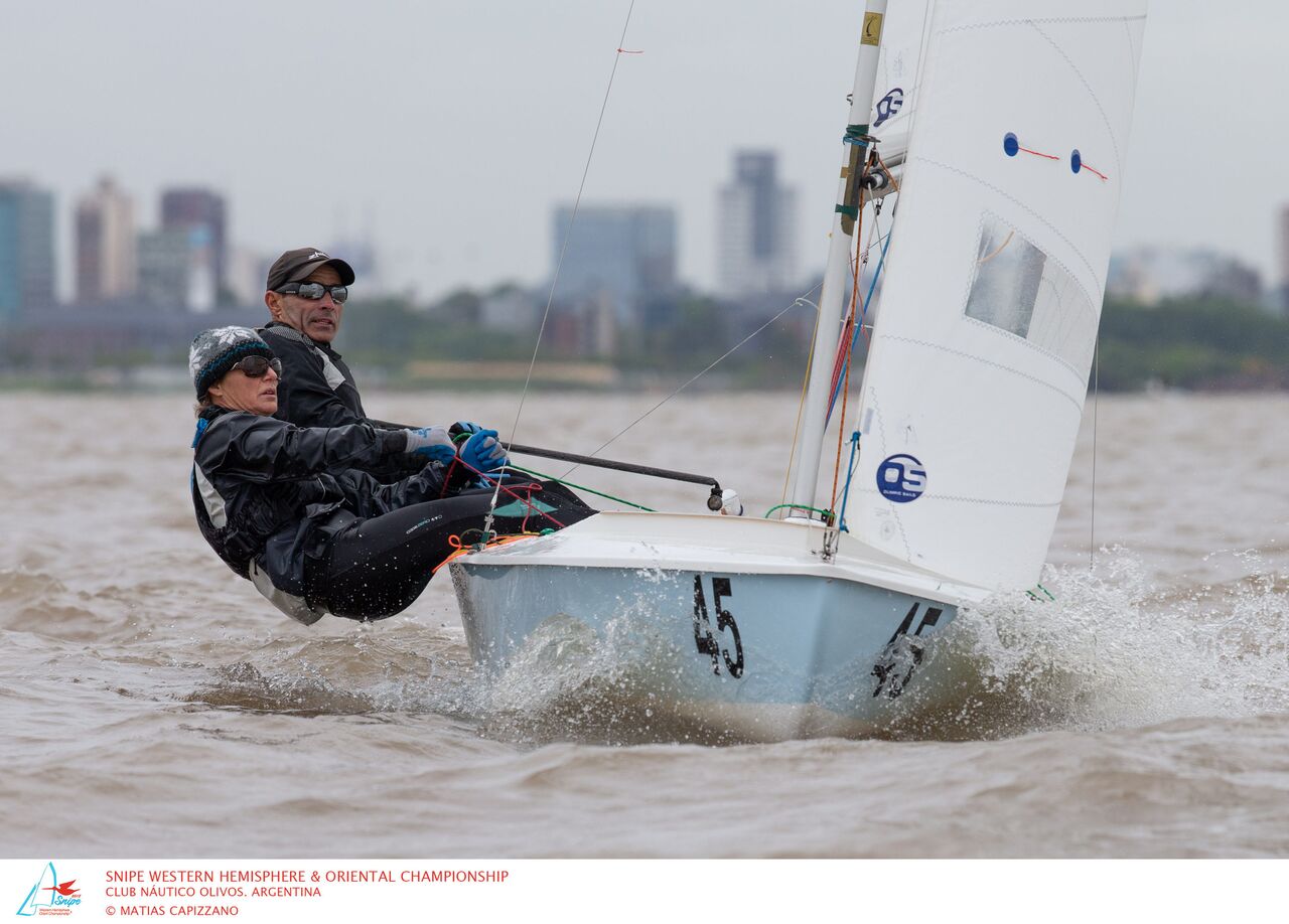 by Kathleen Tocke (Photo courtesy of Matias Capizzano) I have never been a fan of two discards in a regatta. It allows people to take too many risks on the starting line and can contribute to general recalls. However, after not sailing the first day of the Western Hemisphere Championship, it gave us second life. Before arriving in Argentina, we felt well prepared to win the event. We considered it very important for Worlds preparation, so after missing the first day, Ernesto said, "this is just practice." It was a light wind regatta and we prefer breeze. I was told on the first day of the regatta, when it was windy, Ernesto looked like a "a sad little dog, because he couldn't go out and play." On day-two, Luis Soubie saved us, by offering to come to the apartment and take me four blocks to the club in his car. I had a difficult time being upright, and this included walking. Later that morning, we learned, this also included tacking. ...