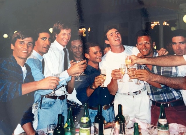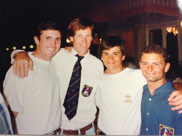 1) Me, Santiago Lange, Pablo Contouris (my crew) and Mariano Parada at the dinner of prize ceremony at ’95 Worlds in Rimini