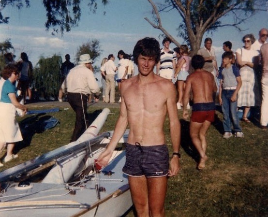 He painted the boat and then won the 1985 Worlds in Argentina at the age of 23. The boat was held together with wire and silver tape. I remember going with my Optimist to see the races; Torben Grael was there, and the late Miyuki Kai was there. Awesome racing! Two years later, Santi finished second at the Worlds in France.