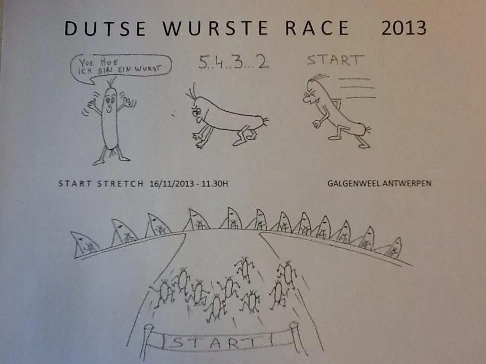 Big Ben Van Cauwenbergh and Nadia, the creators of this legendary event: it’s time to get the Antwerp fleet back together and bring the Dutse Wurste Race back to life.