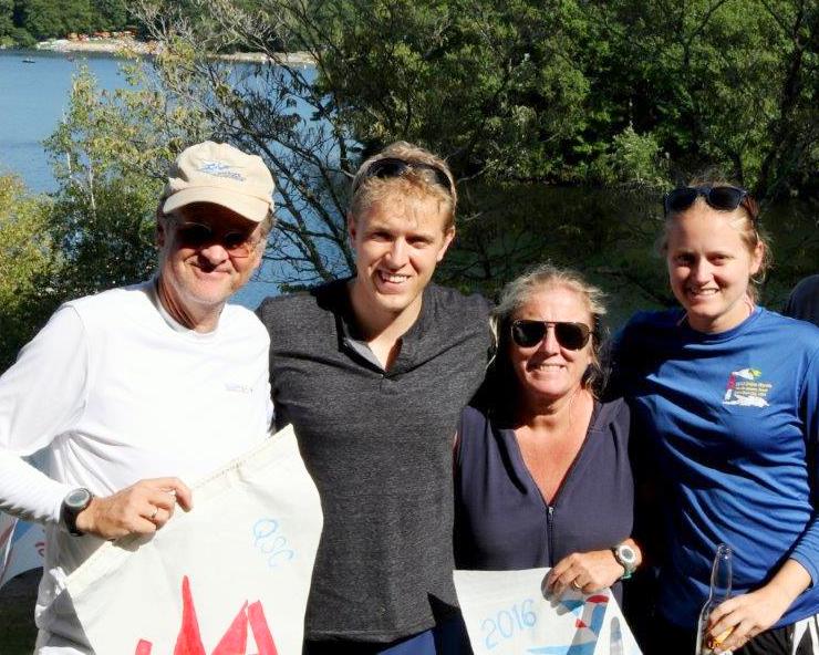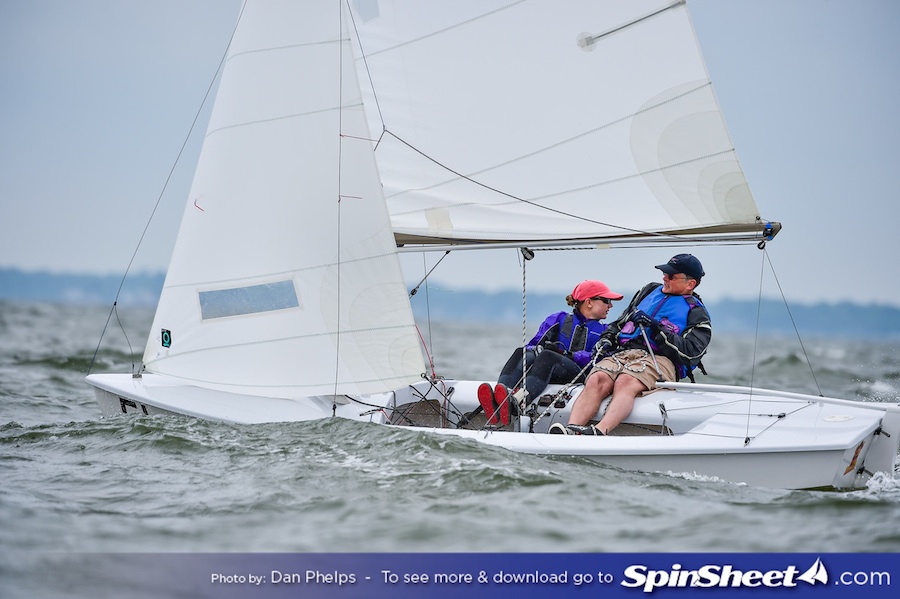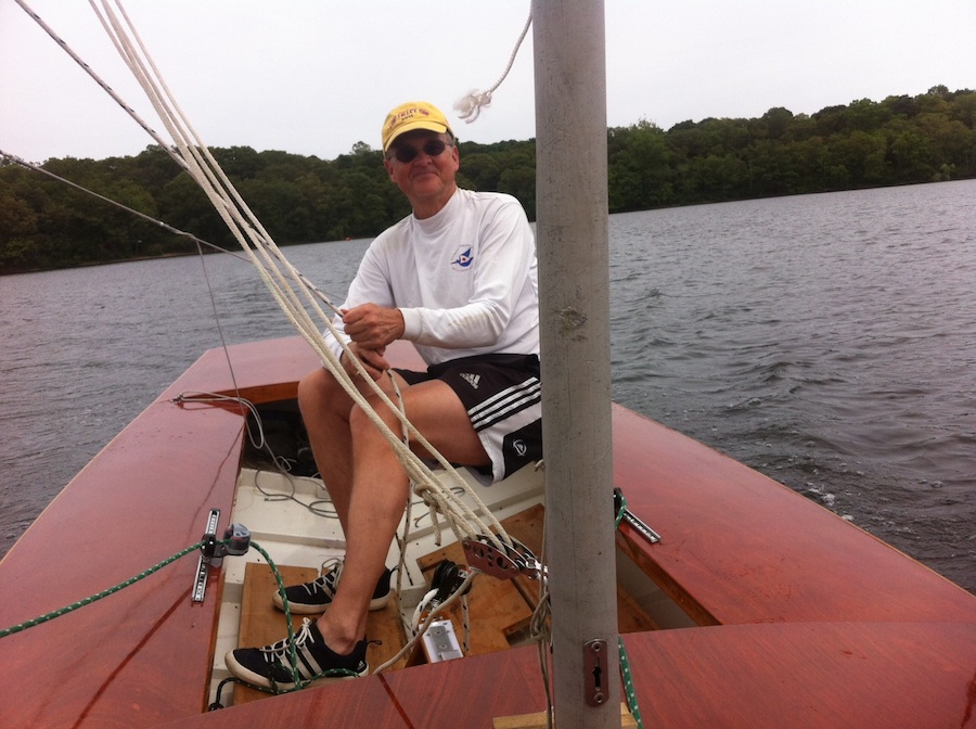 My 9 year-old son Adam crewed for me in his first Nationals (1997 Toms River, NJ). We missed the cut in the heavy-air Crosby but won the lighter-air Wells. Close behind are most of the Lake Quassapaug regattas over the years where I either skippered or crewed for Adam or daughter Kelly (I crewed for 29-year-old Adam at this regatta this past summer).