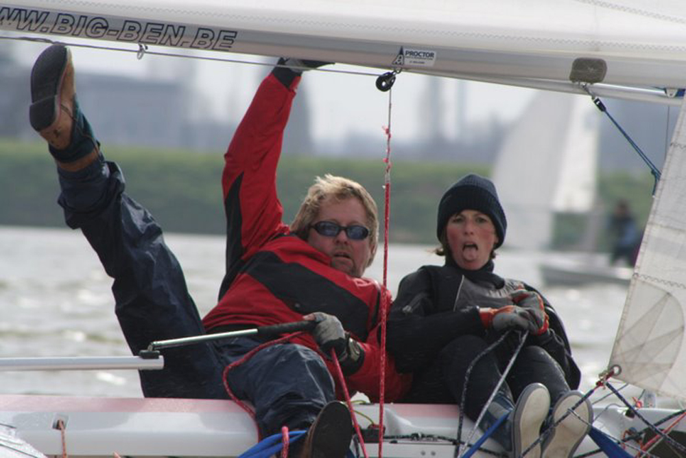 Ben (also known as Big Ben) Van Cauwenbergh, from Antwerp, Belgium, is one of the most popular Snipe sailors in Europe. In the past he was a professional dancer and now is a coreographer and ballet director in Essen, Germany. He usually sails Snipe with his wife Nadia and he is the inventor and organizer of the famous Wurstel Race in Antwerp.