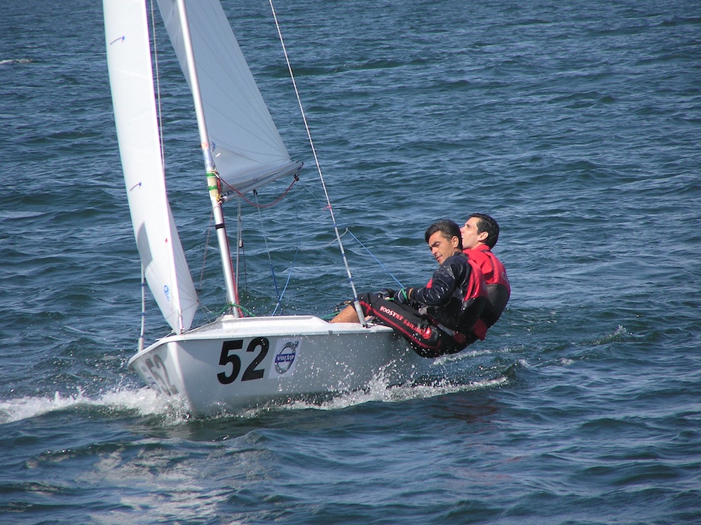 At 11 – 12 years old with Javier Contreras in a Snipe local race.