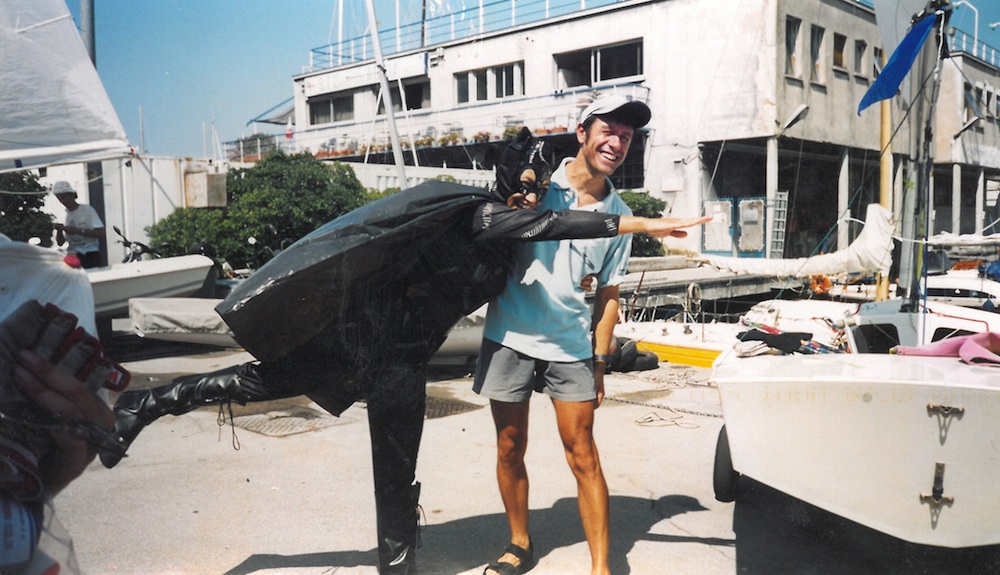 Enrico Michel, Snipe builder and Snipe sailor - 1) Your first time on a sailing boat? On an old wooden optimist when I was 6 - 2) Your first time on a Snipe? As crew of my father when I was 12. In the afternoon right before the race, I hurt my arm falling off the bike and I couldn't use it: my father was really angry ... - 3) The most bizarre thing that happened in a regatta? Some years ago at a National regatta valid as selection for the Europeans. Before the last race Stefano Longhi (who was helming his boat) broke his whiskerpole. He was running for the selection while I wasn't. So I gave him my whiskerpole. In the last race the wind blew at 10 knots and we (my crew and I) even without whiskerpole placed second. It was very funny! Another bizarre thing happened in a local race here in Trieste with Alessandra Papa who was my crew. During the trainings I always appreciated the agility of Alessandra and I called her for this reason Batman. The day of the race, much to my surprise, she showed up completely dressed as Batman, with mask and cape too and she did keep the dress all the race long!
