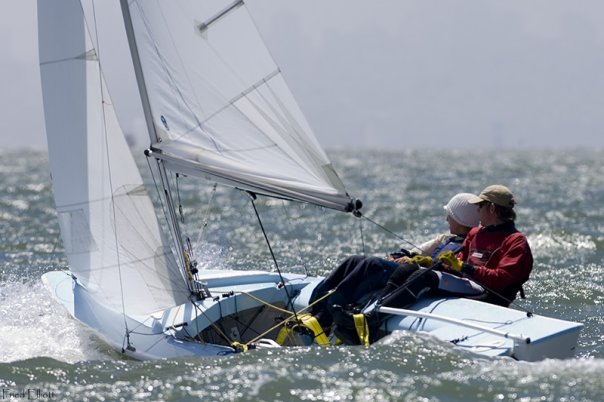 My first time sailing was when I was about 7 or 8. My mom and dad took my twin brother and I on a rental boat in Mission Bay, we screamed in terror any time the boat heeled over! My first boat was a Naples Sabot, a boat similar to the Opti, but far superior in sailing performance, sailed locally in Southern California. My earliest memories of sailing my own vessel was “racing” my twin brother in Sabots around the moorings in a cove in Mission Bay. My family later joined Mission Bay Yacht Club where we raced Capri 14.2’s. My brother sailed with my dad and I sailed with a gentleman named Brian Anderson, who graciously gave me the helm.