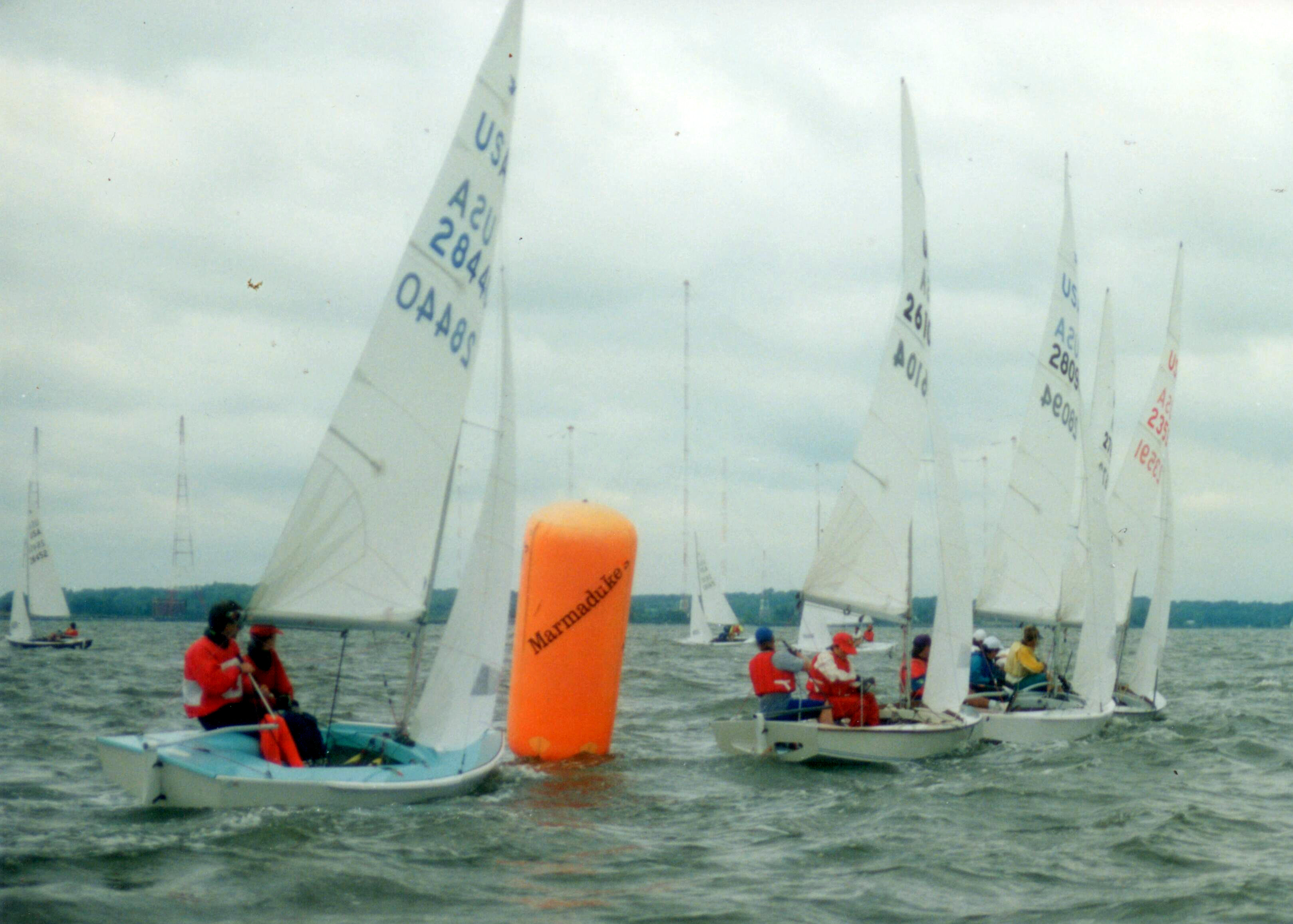 The top ten positions ended up somewhat jumbled from the previous day, with Argyle Campbell from Southern California showing the most gain and moving up to second place, qualifying for the 1995 World Championship in Italy, as Bryan Fishback had qualified through a previous regatta. An awards banquet was held that evening at a local restaurant with many competitors retiring to Marmadukes pub to finish off the evening.