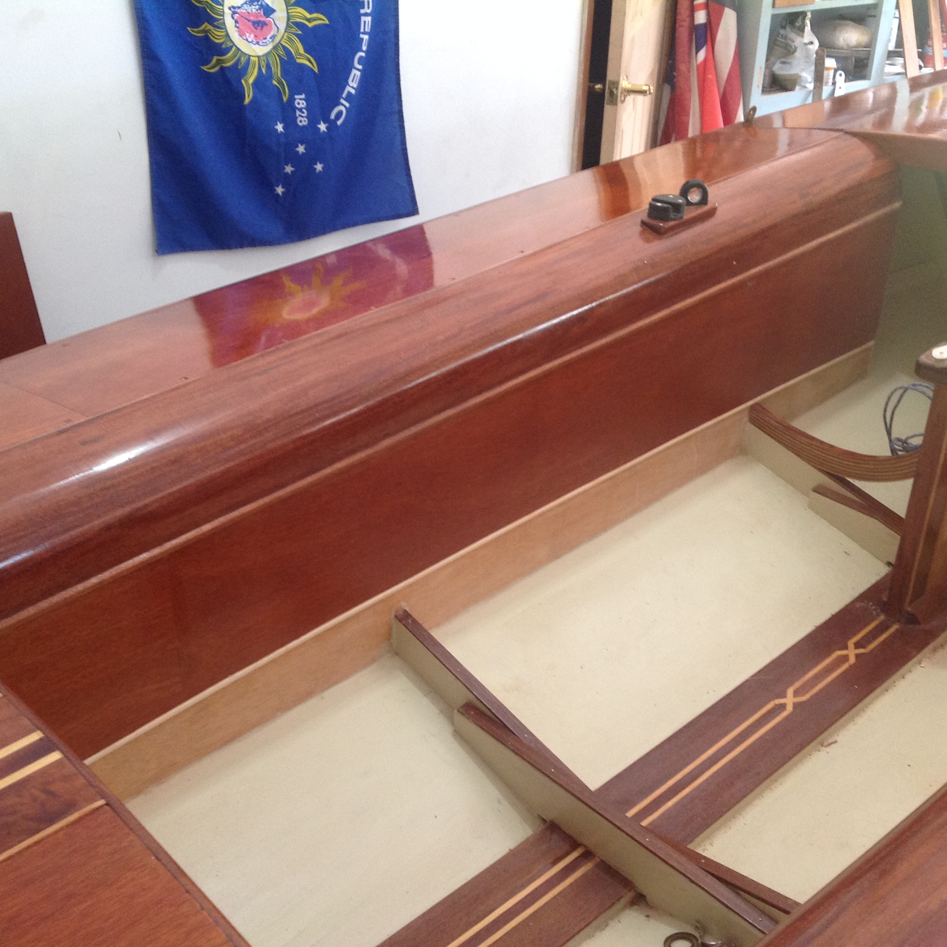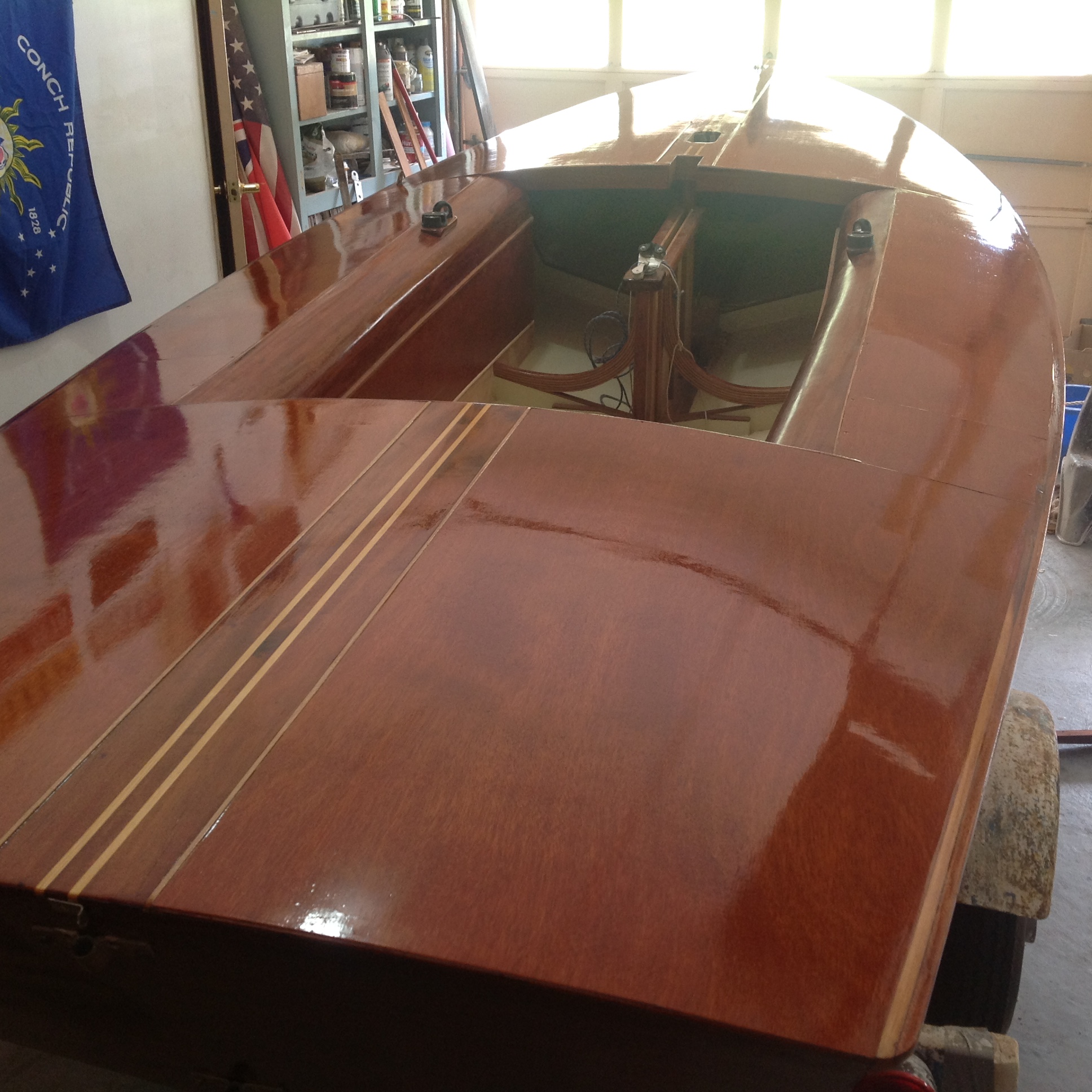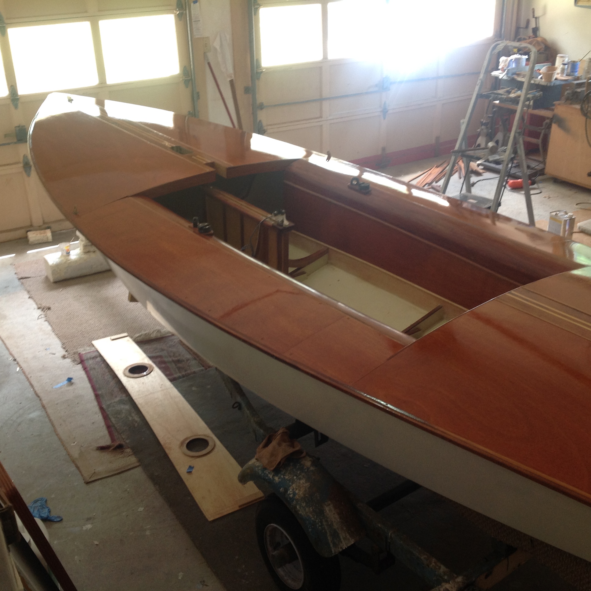 This Snipe #6976 is one of six Snipes built by Russell’s Boat Works in Miami, Florida USA. Only two exist now, this one and #6715 “Tiger” (owner John Rose) which was the first of the six built. #6976 was never raced as far as I know. It was owned originally in Orlando, Florida and the owner also had a summer cottage on Walloon Lake in northern Michigan where the boat was kept mostly for pleasure sailing. These were fast boats, others were owned in Atlanta, Georgia and Chattanooga, Tennesee in their early days.