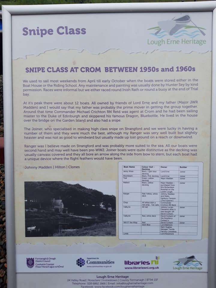 Johhny’s father, Major Madden, already raced two Snipe dinghies at Crom, TEAL and MALLARD. Several sailing families raced Snipes at Crom in the 1950s and 1960s. Lord Erne, Belmores, Rossmores, Corbetts, Lucas-Clements and others.