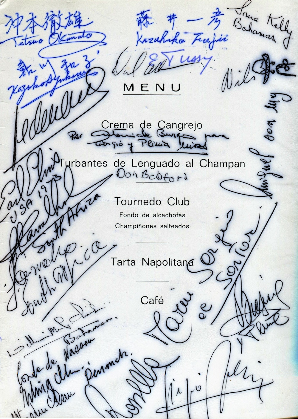 Souvenir from Malaga 1973 Worlds – Gala Dinner Menu