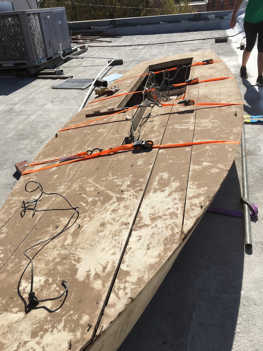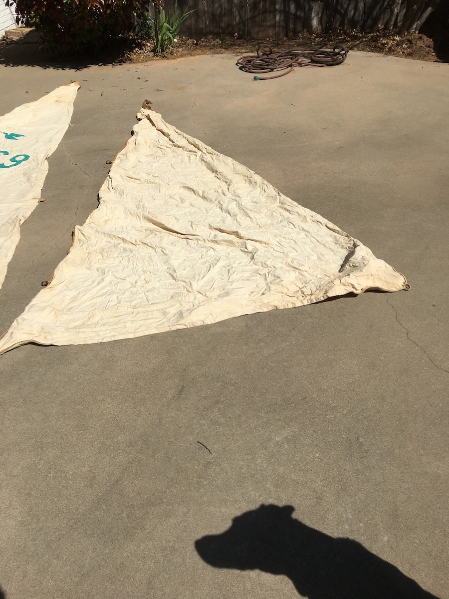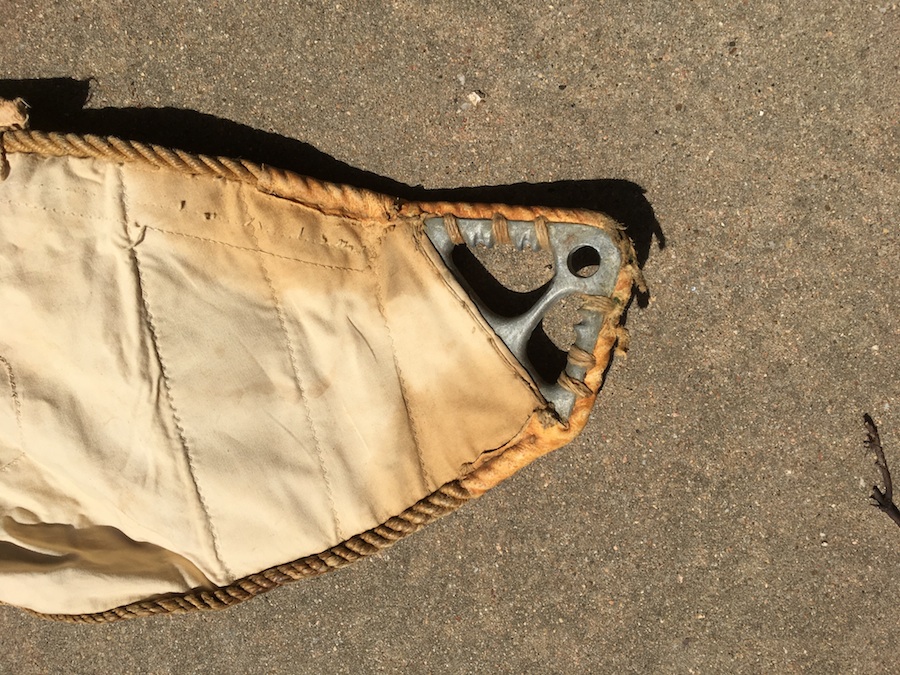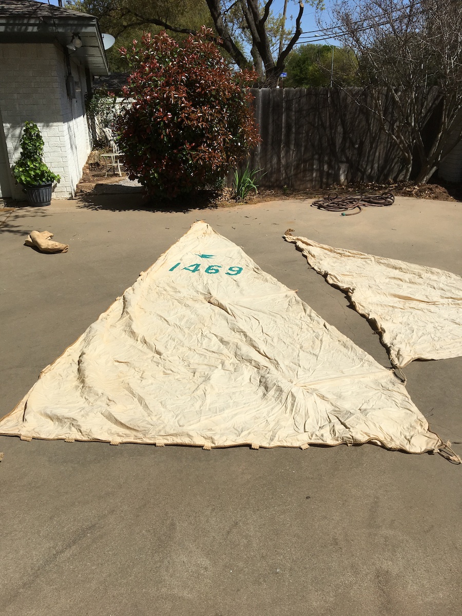This Snipe was owner-built in 1935 in Wichta Falls Texas USA, where there was a Snipe Fleet (#34) at that time before WW II. It has been stored for many years in an old building in Wichita Falls, and may not have been sailed since the end of WW II. The current owner is beginning a restoration process soon. The old cotton sails are original, and the mainsail appears to have been modified to adapt to a slotted mast and boom. The centerboard is a pivot board setup.