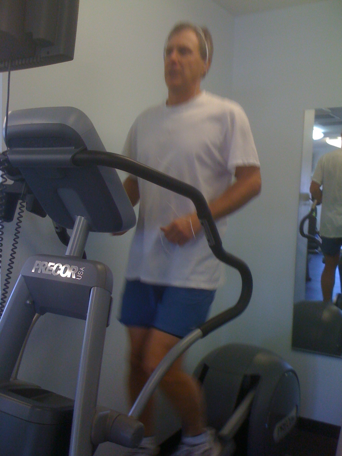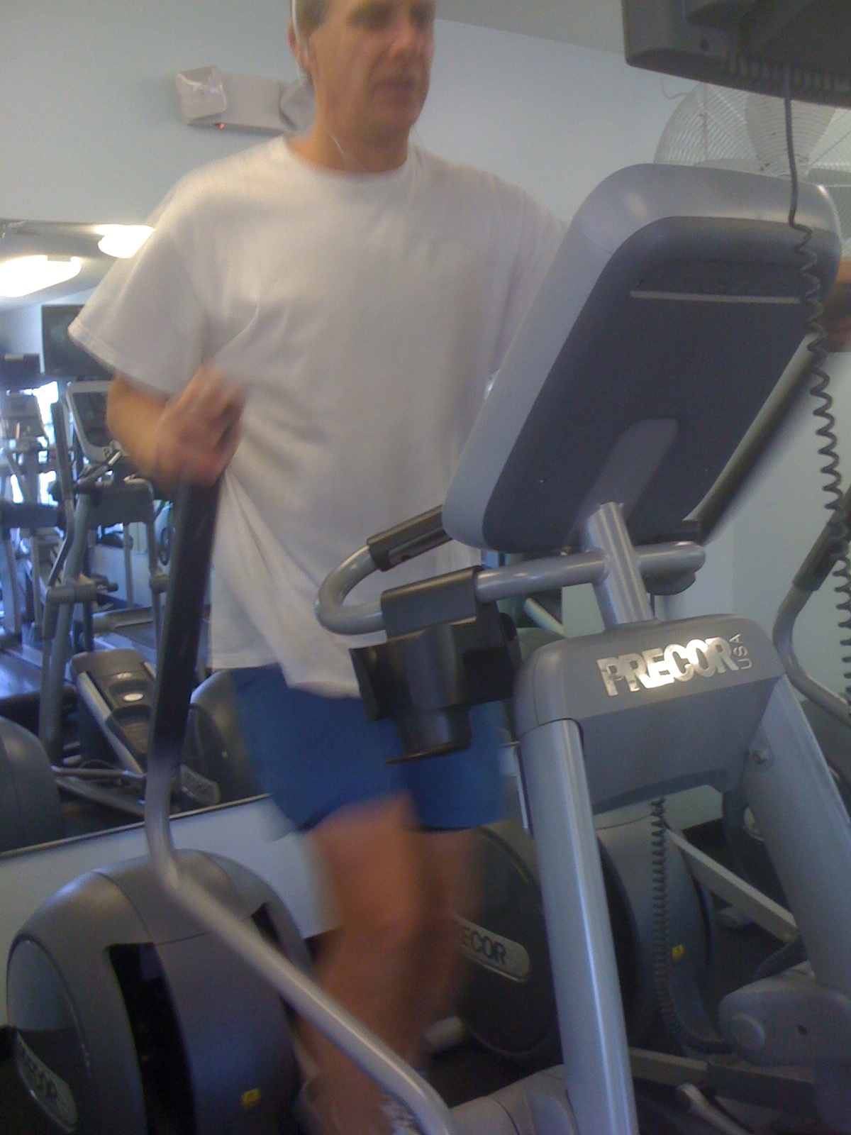 A little bit about working out when you are getting old (I’ll be 57 in March): You have to be smart working out. Gone are the days when you can pile on the weights and challenge yourself. The challenge now is not to hurt yourself, to just push a little, so that you do not pull muscles and lose training days. Likewise, eat healthy, take vitamins (I take a multiple vitamin, vitamin C, and fish oil every day), and work hard to stay healthy, so that you do not lose training days. I do cardiovascular workouts about 5-6 days a week. I do 30 minutes on the elliptical trainer on days that I also exercise – every other day. On days that I do not exercise, I do 40 minutes on the elliptical trainer. No more running for me; too hard on the back. I always start with the elliptical trainer before exercise to get the oxygen flowing in my blood and to loosen up.
