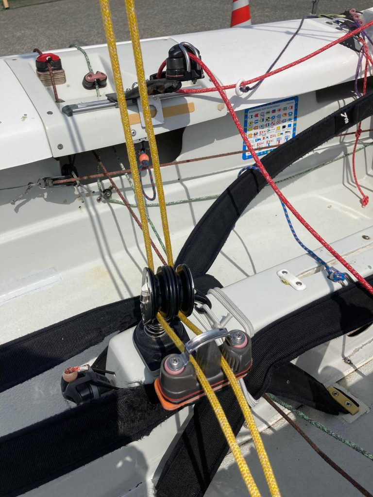 Shinichi is one of the best Snipe Sailors in Japan. He wanted to share with us this mainsheet system, partly similar to the one used on the Stars. “The mainsail adjustment is much more accurate this way,” says Shinichi.