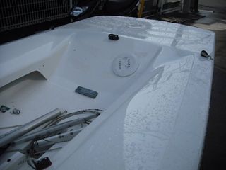 The deck layout was designed to meet the sailors requirements. Junichiro’s suggestions were also important contribution. The shape of the hiking area on the deck, especially the slope angle was also carefully determined. The deck gear like cam cleats on the deck was positioned as low as possible under the deck surface. The weight distribution and the hull rigidity were also carefully considered.