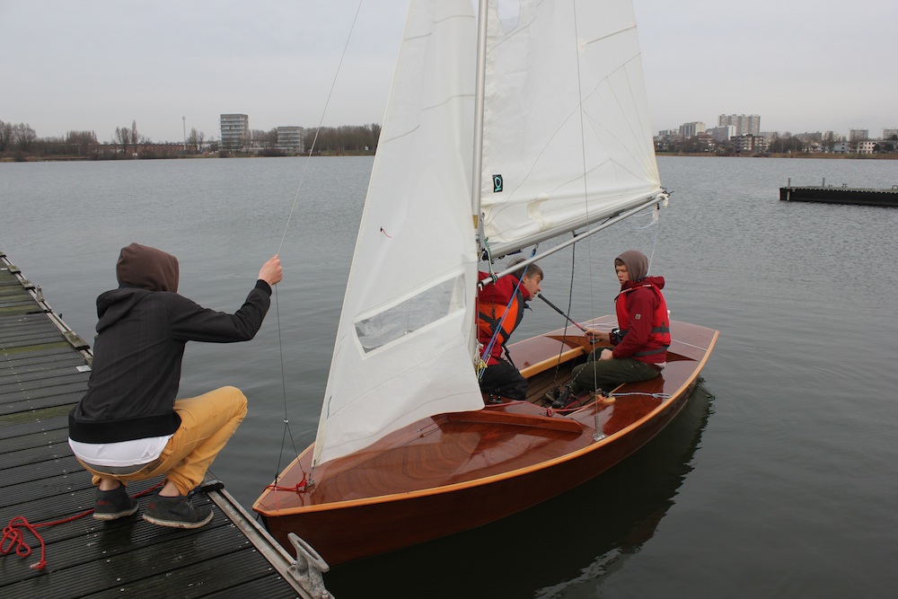 Op de foto’s kunt u zien dat ze drijft. Ik kan hieraan toevoegen dat de boot geen druppel water maakt en dat ze zeer goed zeilt! Hopelijk zijn we vertrokken voor jaren zeilplezier met deze houten snipe.