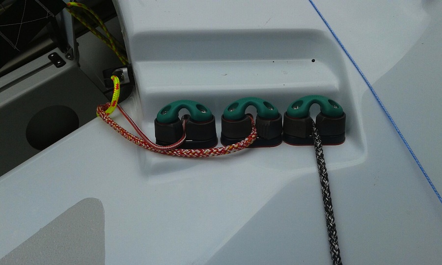 In the pictures you can see that there is only one cleat for the jib sheet (not for the main).