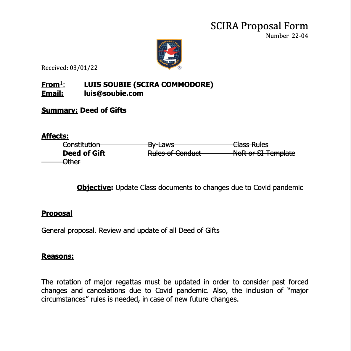 The proposal consists of creating a "special status" for small/new SCIRA country (they can form a fleet and become SCIRA country even with only one boat).