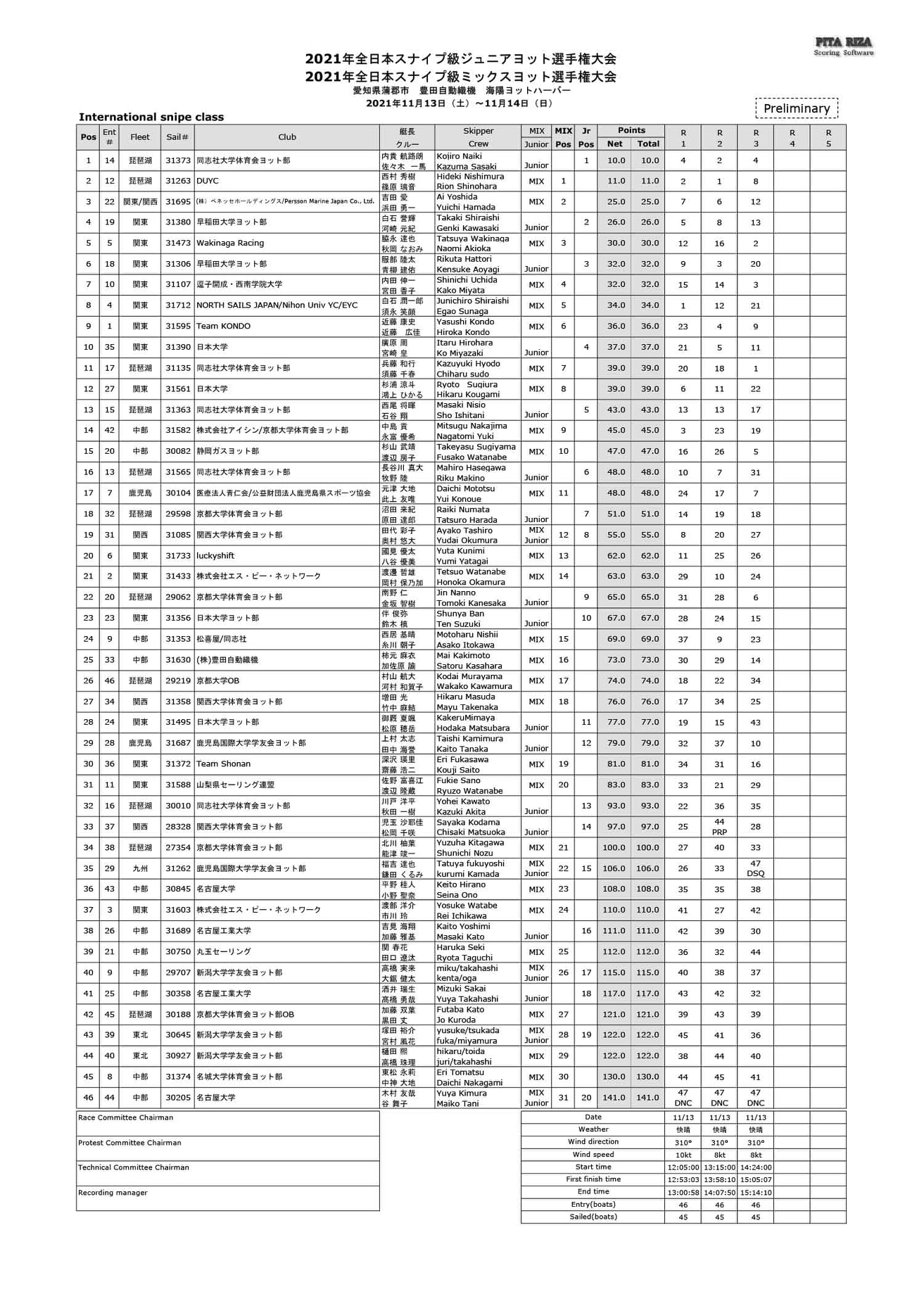 Gamagori, Japan, November 13, 2021. Results after 3 races: