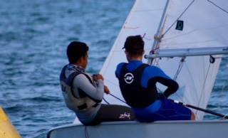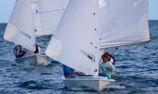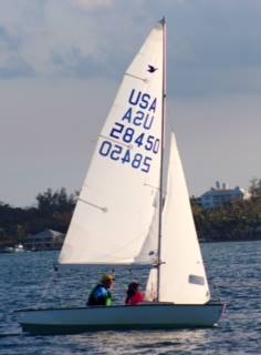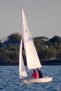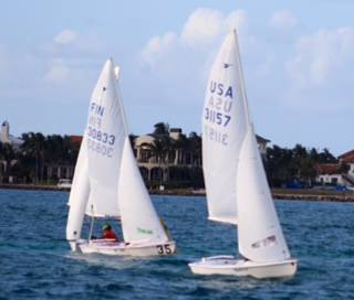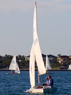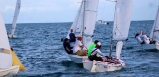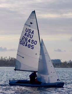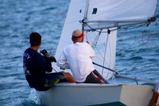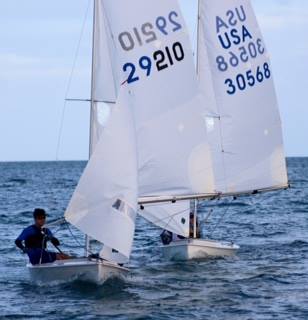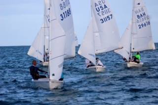 The wind was light, it took about a half hour from scheduled start time to hit 5kts. Two races were sailed in conditions of 4-7kts, mostly on the light side, with the water mostly flat. All the lake sailors felt at home! The breeze shifted back and forth from N to NNE, so it was all about picking the right side of the course at the right time.