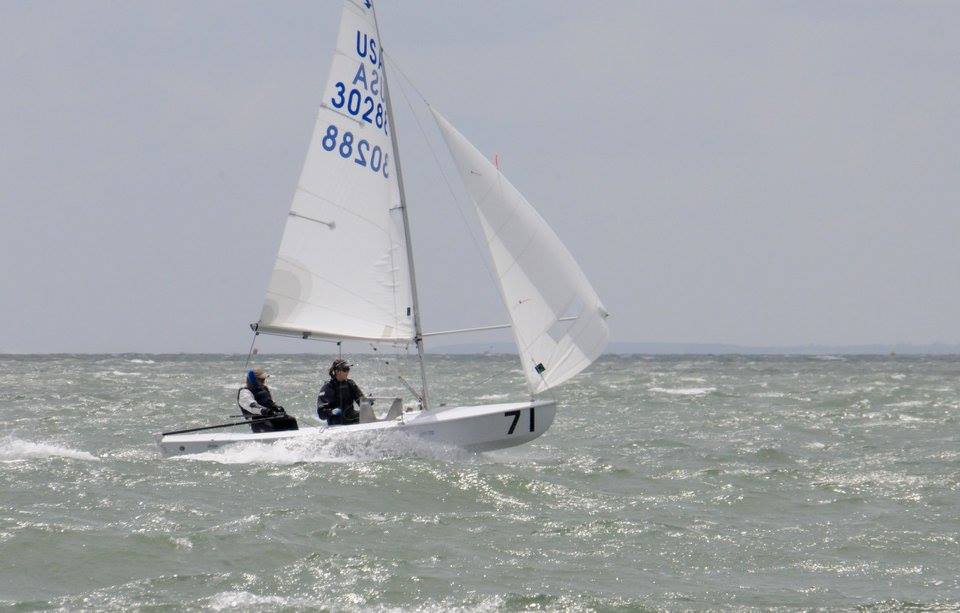 Miami, March 19, 2016. 15-20 knots from the SW and two double triangle races today, but the 50th DonQ fleet was revived by daiquiris and a great Cuban dinner. Hoping for one more race tomorrow, if we can dodge the approaching thunderstorms.Results after 4 races.