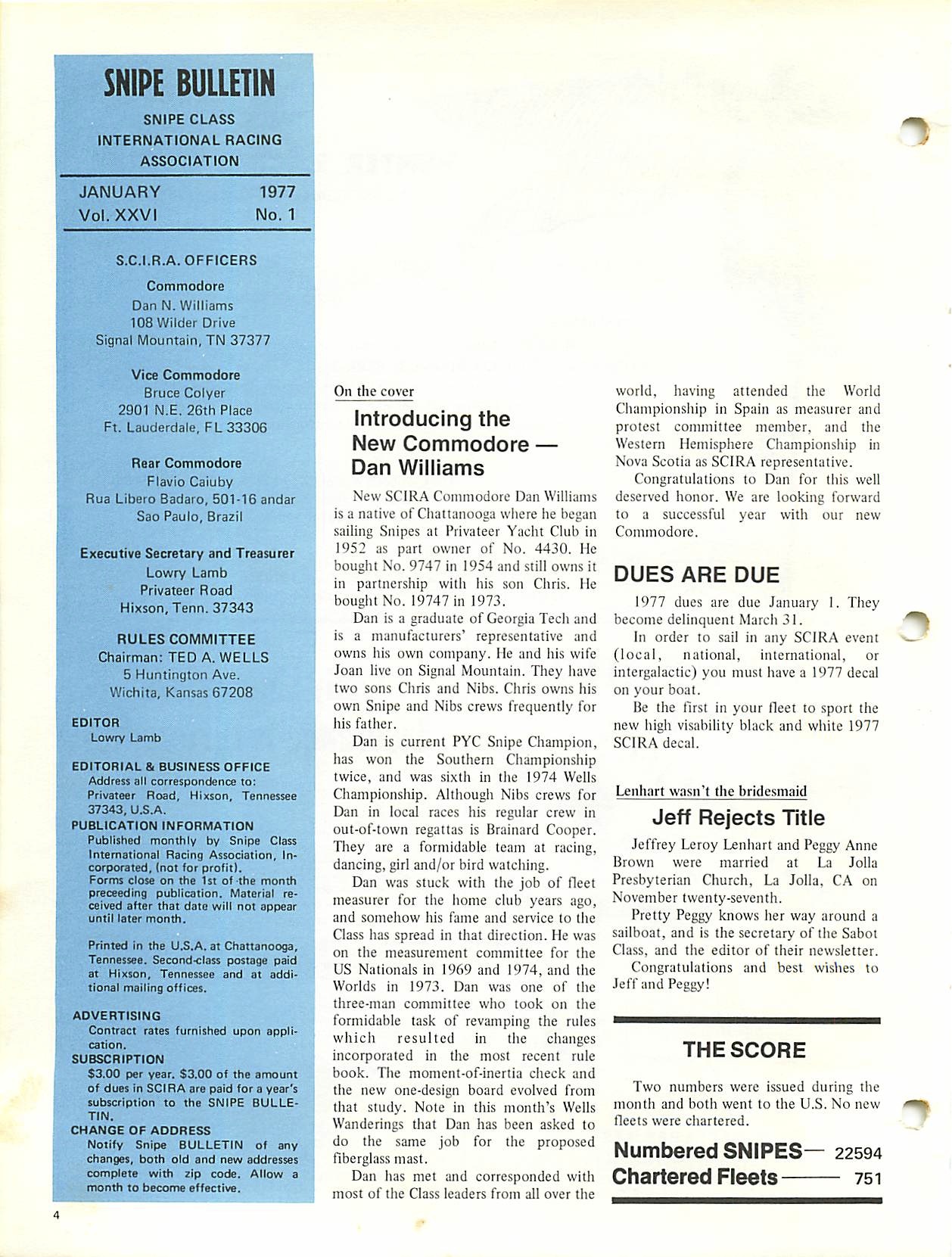 Dan Williams, former SCIRA Commodore in 1977 and long time Rules Chairman/Chief Measurer, has passed away as of June 4.