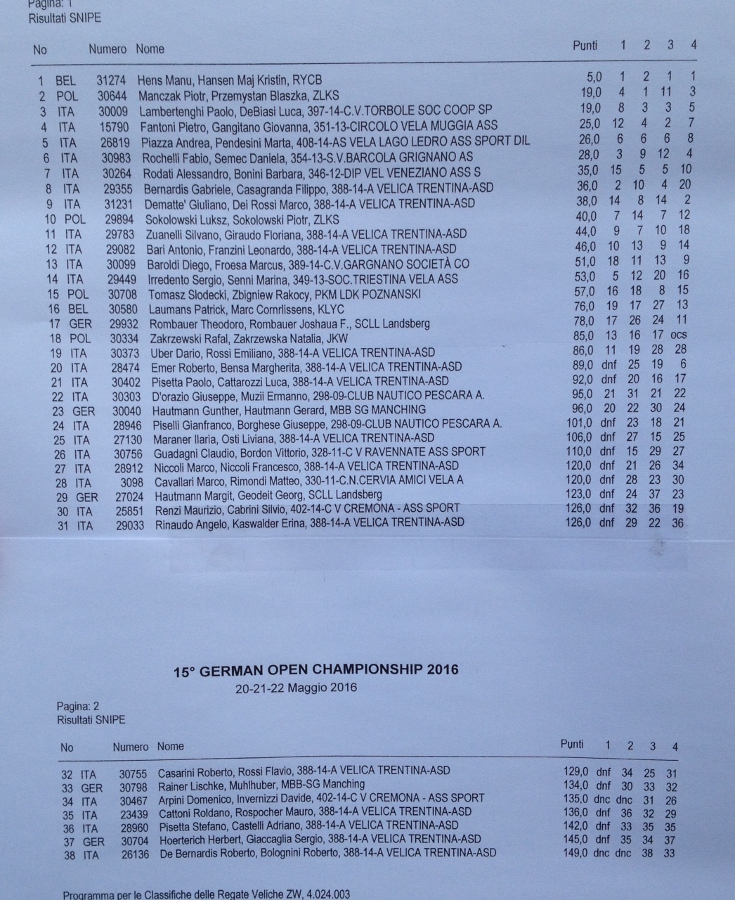 Caldonazzo, May 21, 2016. Results after 4 races.