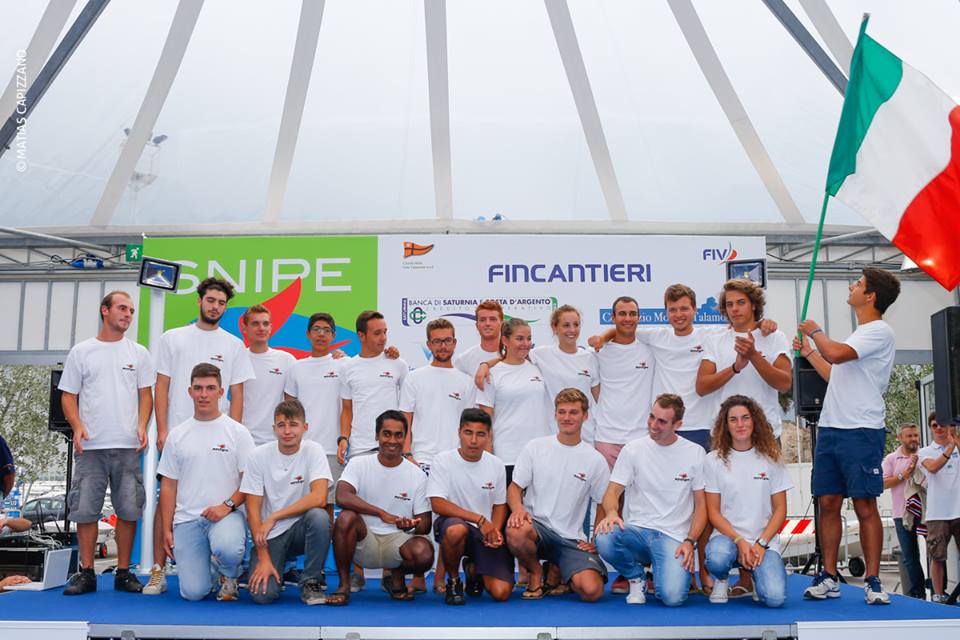 The 2015 Snipe World Championship, hosted by the Circolo della Vela Talamone in Tuscany opened racing today with the first day of the Junior Worlds. Thirty one teams are competing for the title. Winning today’s race was a team from Brazil, Nicholas Pellicano Grael & Fabio Kohler Harkot. They are followed by Mafalda Pires de Lima & Tomas Pires de Lima, Portugal, in second and the Italians finishing in third, Michele Meotto & Alberto Cassandro. The juniors are racing through September 18 with the open title to be held September 21-26.