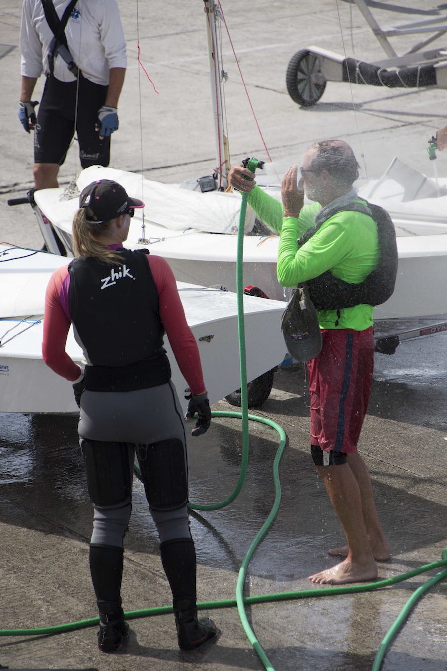Nassau, October 21, 2016. Results after 5 races (Photo courtesy of Primi Murgui) 1. USA Ermesto Rodriguez & Kathleen Tocke, 14 2. ARG Luis Soubie & Diego Lipszyc, 16 3. BRA Ralph Rosa & Alfredo Rovere, 17 4. USA Doug Hart & Christina Persson, 26 5. JPN Motoharu Nishii & Eisuke Nord, 36 Report by Carol Cronin Two races today in very challenging conditions. Northwest breeze came right down Montagu Bay, but it varied in speed from 10-18 knots and from 300-010 degrees. Those who got off the line in a position of the next shift were quickly launched, leaving the rest of us with few options for a clean lane. After that it was a matter of staying in the pressure, which filled in from side to side with no predictable pattern ...