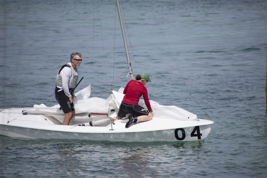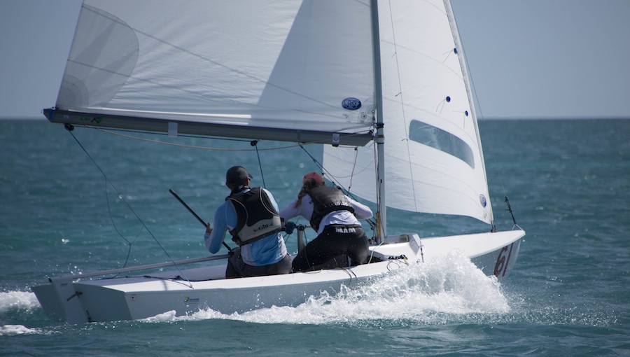 Ernesto Rodriguez/Kathleen Tocke won the day with a 2-1 and are leading. Ralph Rosa/Alfredo Rovere (BRA) also sailed well, but they are still one point behind Luis Soubie/Diego Lipszyc (ARG) who are second overall. We have two more races tomorrow so anything could happen, especially if the predicted light air finally comes through.