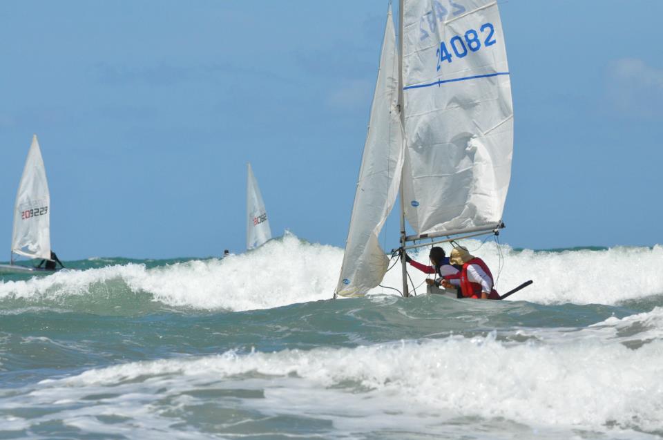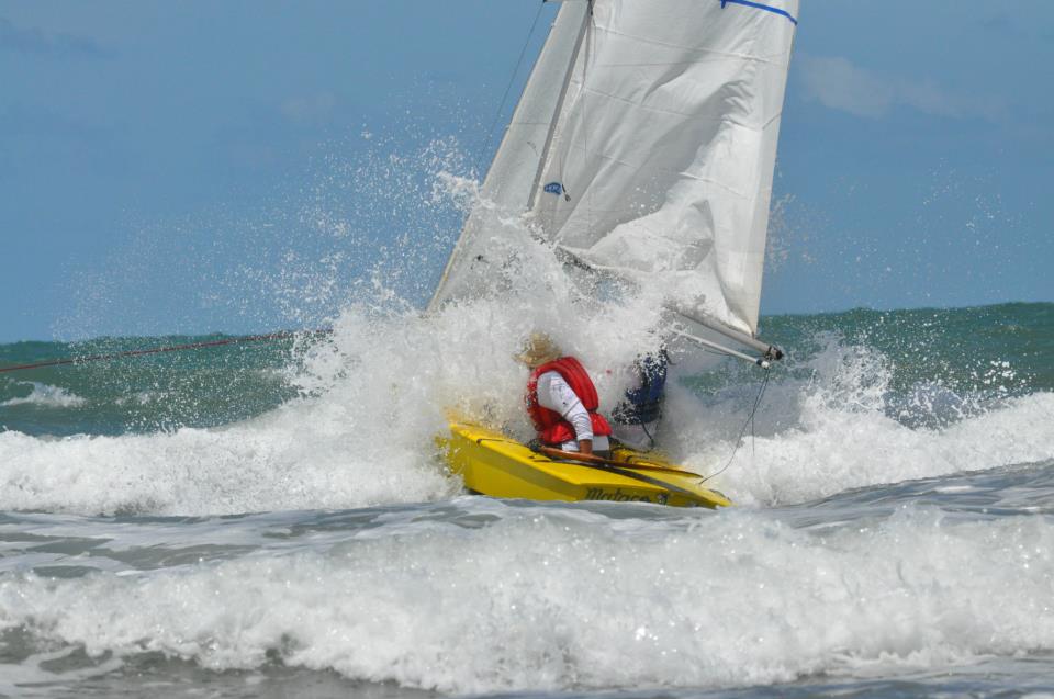 Fotos de las regatas de snipe en la ciudad de Monte Hermoso- Argentina. Un dia de buenos vientos, pasando las olas (courtesy Guillermo Ramila).