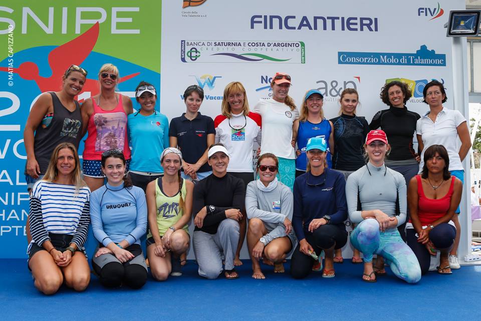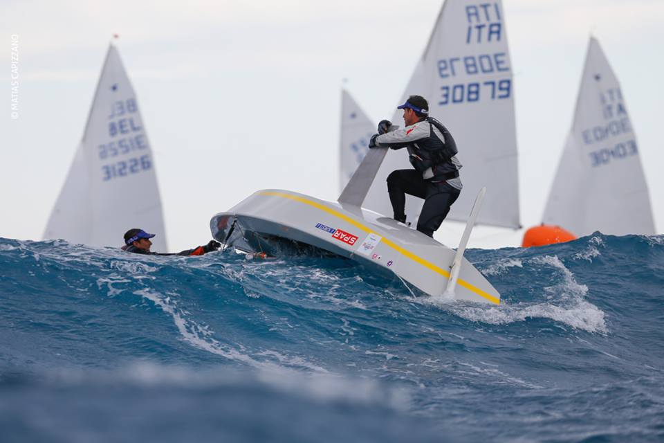 Talamone, September 23, 2015. (Photo courtesy of Matias Capizzano) Results after 5 races 1. ARG Luis Soubie & Diego Lipszyc, 32 2. USA Augie Diaz & Kathleen Tocke, 43 3. JPN Yuichi Oi & Noriaki Sakai, 60 4. BEL Manu Hens & Victor Perez Campos, 65 5. BRA Mateus Tavares & Gustavo Carvalho, 68 6. USA Randy Lake & Kate Sheahan, 69 7. ITA Enrico Solerio & Paolo Lambertenghi, 71 8. ESP Damian Borras Camps & Carlos Bats, 75 9. ESP Jordi Triay Pons & Lluis Mas Barcelo, 75 10. JPN Masakazu Sasai & Shingo Ishikawa, 83 Urban-Seixas (BRA) win Race 5. Gale steals the show in Race 6, abandoned Heavy duty sailing and good seamanship were called for on day 3 of racing in Talamone Tuscany @ the Snipe World Championship organized by the Circolo della Vela Talamone. Race 5 was completed with Mario Calazans (Maru Urban)-Daniel Seixas (BRA) crossing the finish line in 1st position. For safety reasons, race 6 was abandoned when a gale swept through Snipe Bay with winds on the race course reaching 26-30 knots. A good call by the Race Committee chaired by Fabio Barasso who could also count on the on-the-water safety team of the Circolo della Vela Talamone to ensure all 83 crews from 18 nations could return safely to shore. Spaniards Soto Valero-Belmonte Cuenca dismasted and were towed into port. After five races with no discard, Luis Soubie – Diego Lipszyc from Argentina are still in the lead with 32 points (4-6-8-3-11). Augie Diaz - Kathleen Tocke (USA) are second at 43 points (12-5-7-15-4). Third place on the provisional scoreboard for Japanese Yuichi Oi-Noriaki Sakai at 60 points (18-29-9-2-2). ...