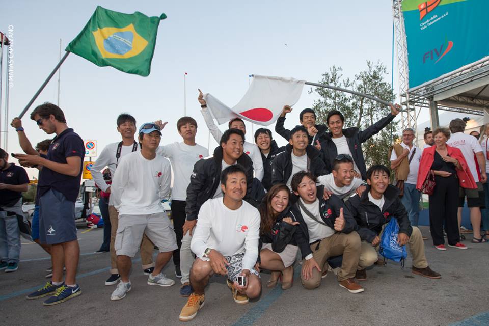 On the starting line: Argentina (7 teams), Belgium (6), Brazil (9), Columbia (1), Croatia (1), Denmark (1) Ecuador (2), Finland (1), France (2), Great Britain (1), Japan (7), Norway (2), Poland (3), Spain (12), Sweden (2), United States (9) and Uruguay (1). Italy is represented by 16 crews in the Snipe World Championship.