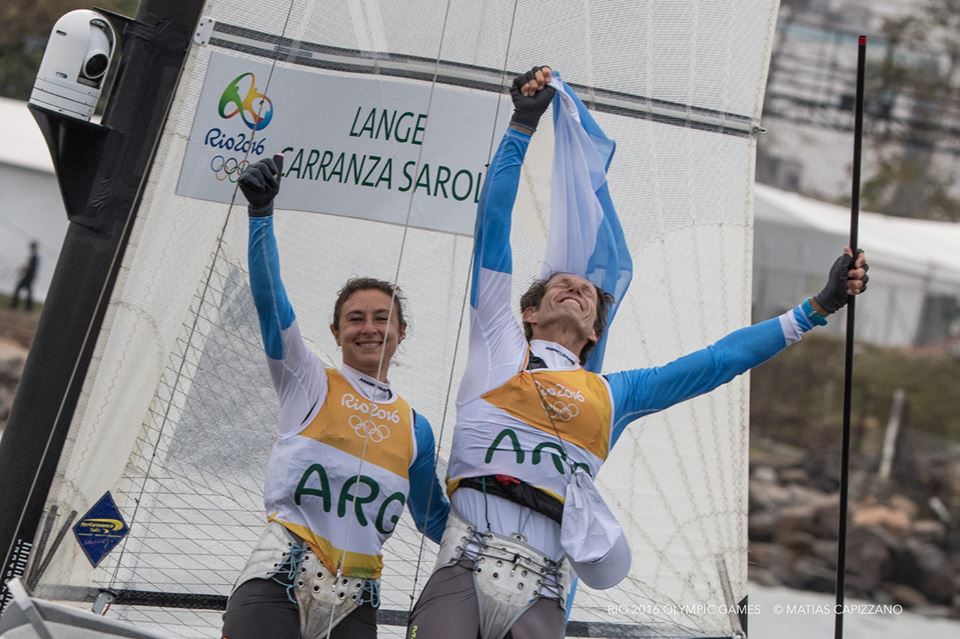 Santiago Lange (1985, 1993 and 1995 Snipe World Champion), with his crew Cecilia Carranza Saroli, wins the gold medal in Rio de Janeiro in the Nacra 17.