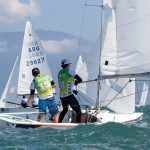 At the end of race six, the wind proved to be less stable than yesterday and the Race Committee boat moved in search of a better spot. Once the course was set – 13 knots from East – a Brazilian team was once again leading the fleet, and this time it was Juninho de Jesus with crew Gabriel Borges, followed by another Spanish team Juan Deben with José Pardo and in third another female skipper, Juliana Duque with Rafael Martins (BRA).