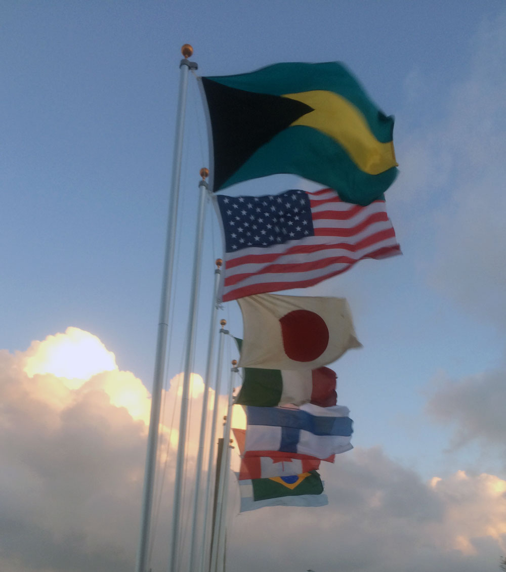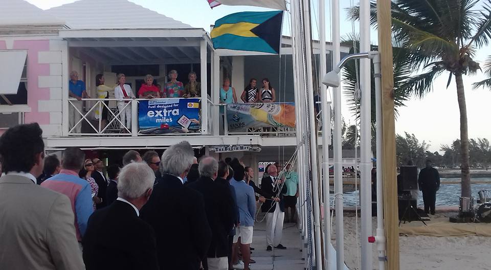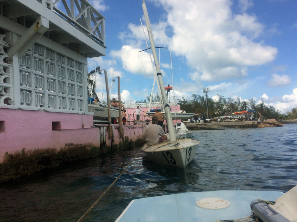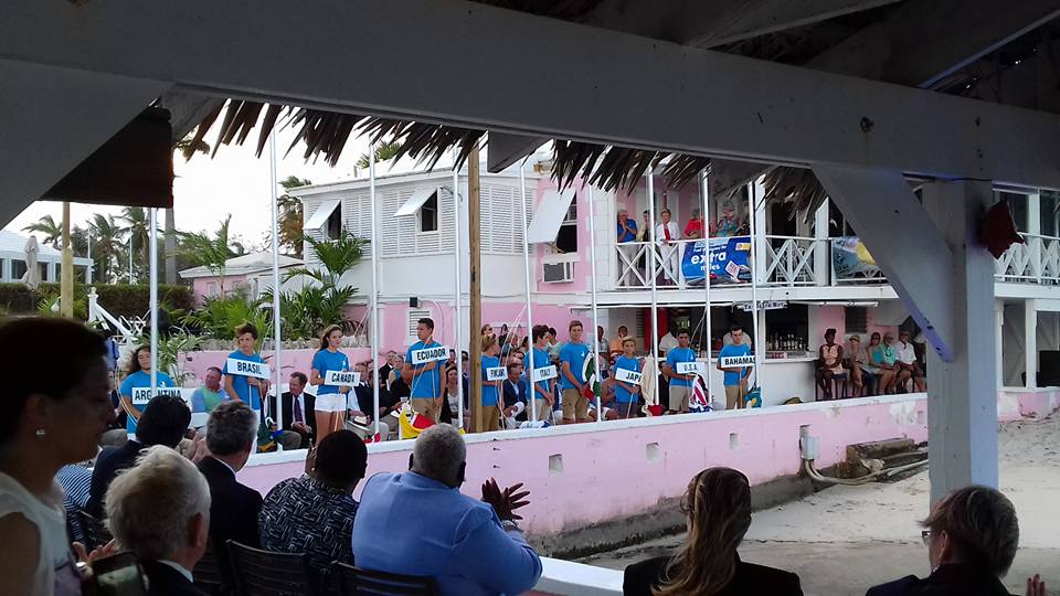After everyone had hauled out and cleaned up, the regatta officially opened with speeches from Gwyneth Crook, Lori Lowe, and various representatives of the Royal Nassau Sailing Club and Bahamian government. Each country’s flag was raised with a short snippet from each national anthem. Let the Worlds begin!