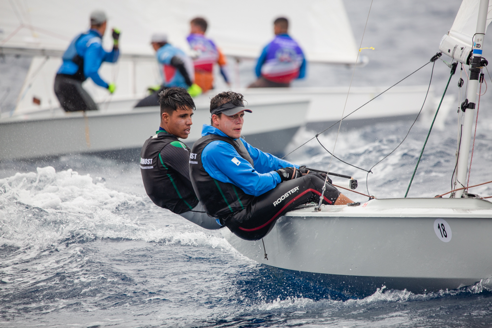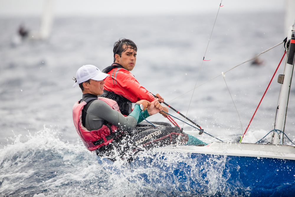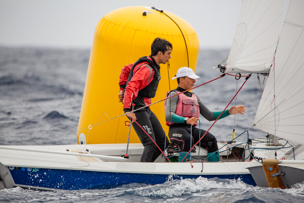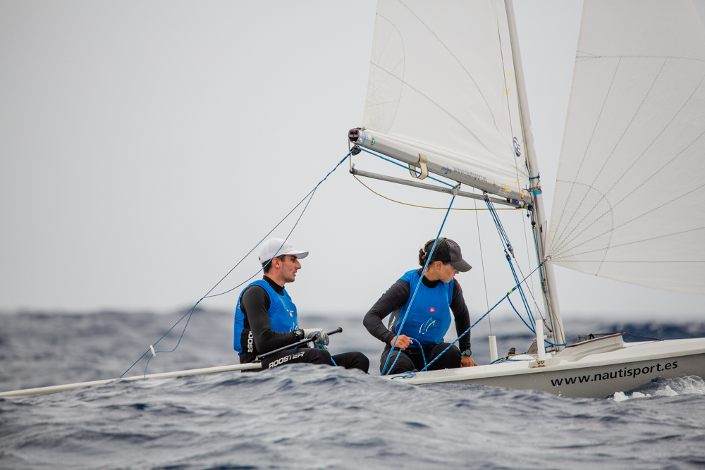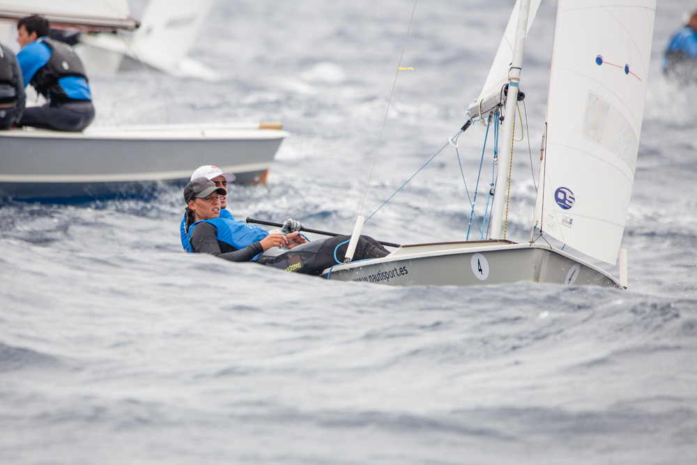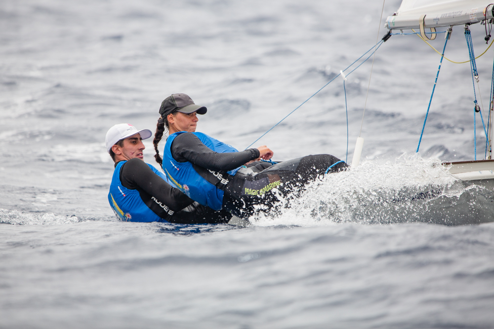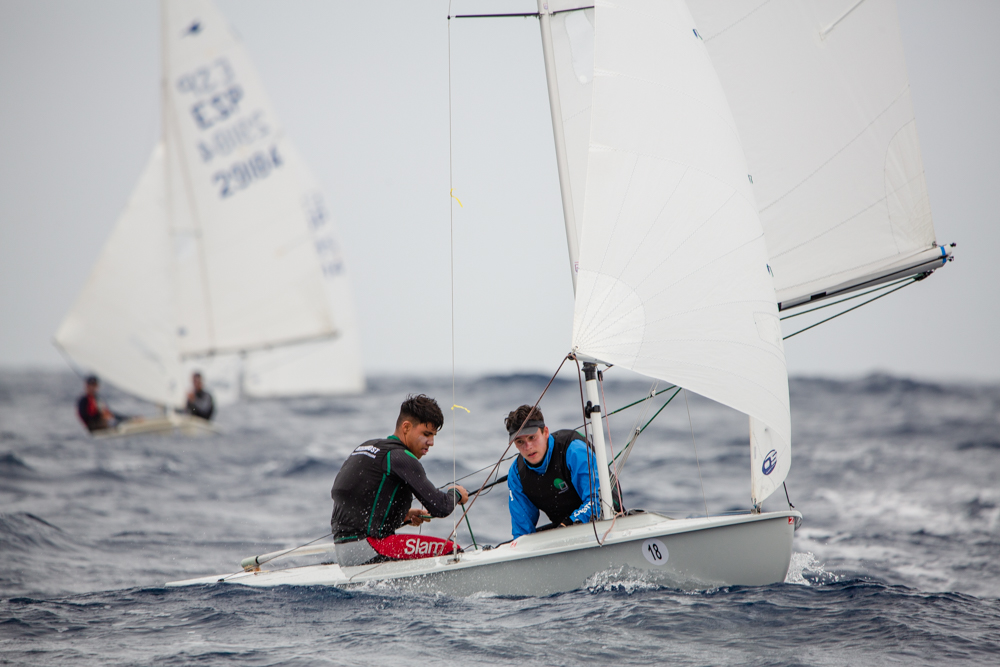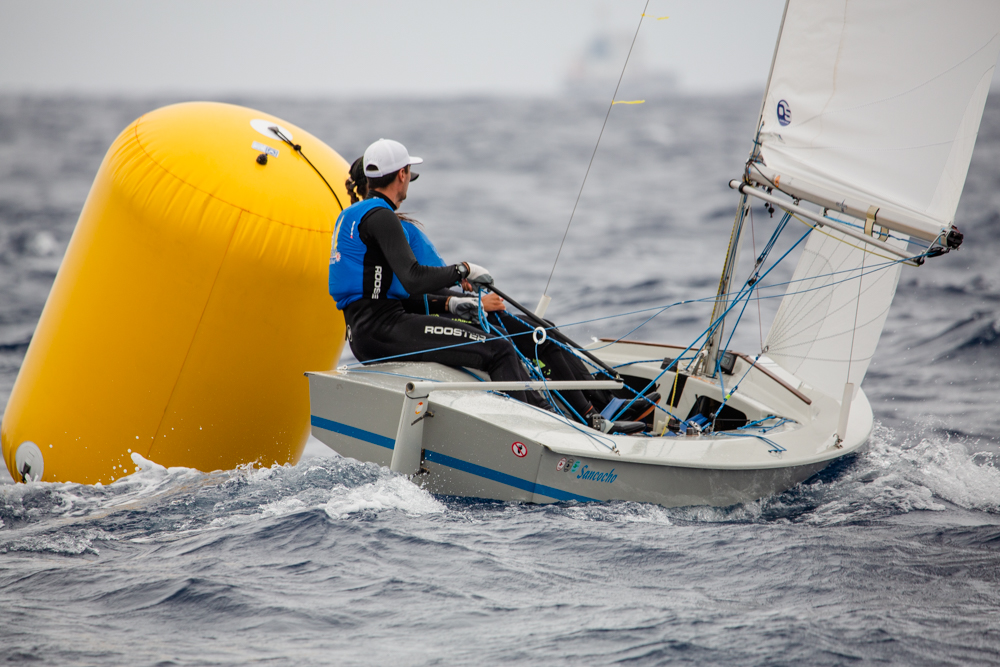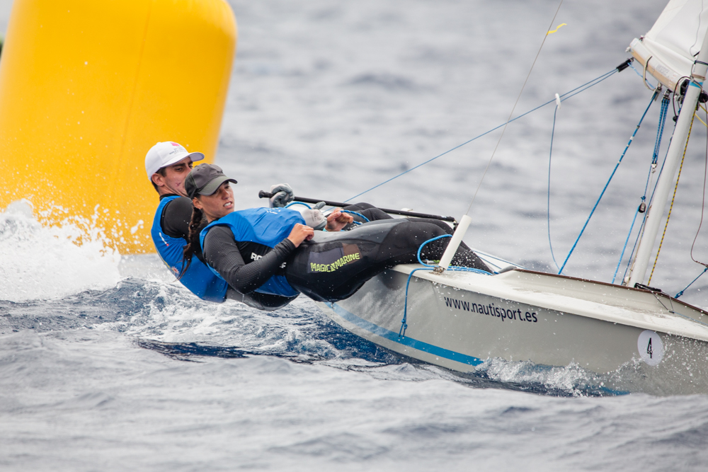 Siguen sin dar tregua y parecen jugar en otra liga, Beneyto / Iess (1º-1º-1º1º-1º-(1º)) tienen este campeonato prácticamente en el bolsillo, con seis flamantes primeros, ganando todas las regatas. Así pues, el juego en esta jornada ha estado en el resto de posiciones de la tabla, con varios cambios en la clasificación provisional. Los hermanos Ian y Carlota Hopkins (RCNGC) con los parciales (2º-2º-4º-5º-7º-(13º)) pincharon en la última prueba y bajan a la cuarta posición de la provisional, a un solo punto de sus compañeros de equipo Rubén Naranjo / Rafa del Castillo, con un potente comienzo (3º-(8º)-3º2º-5º-6º) que les ha permitido subir al podio provisional. La tripulación Silvela / Mauro Glez.-Regueral dan el salto al segundo puesto, gracias a una trabajada regularidad ((6º)-4º-2º-4º-2º-2º).