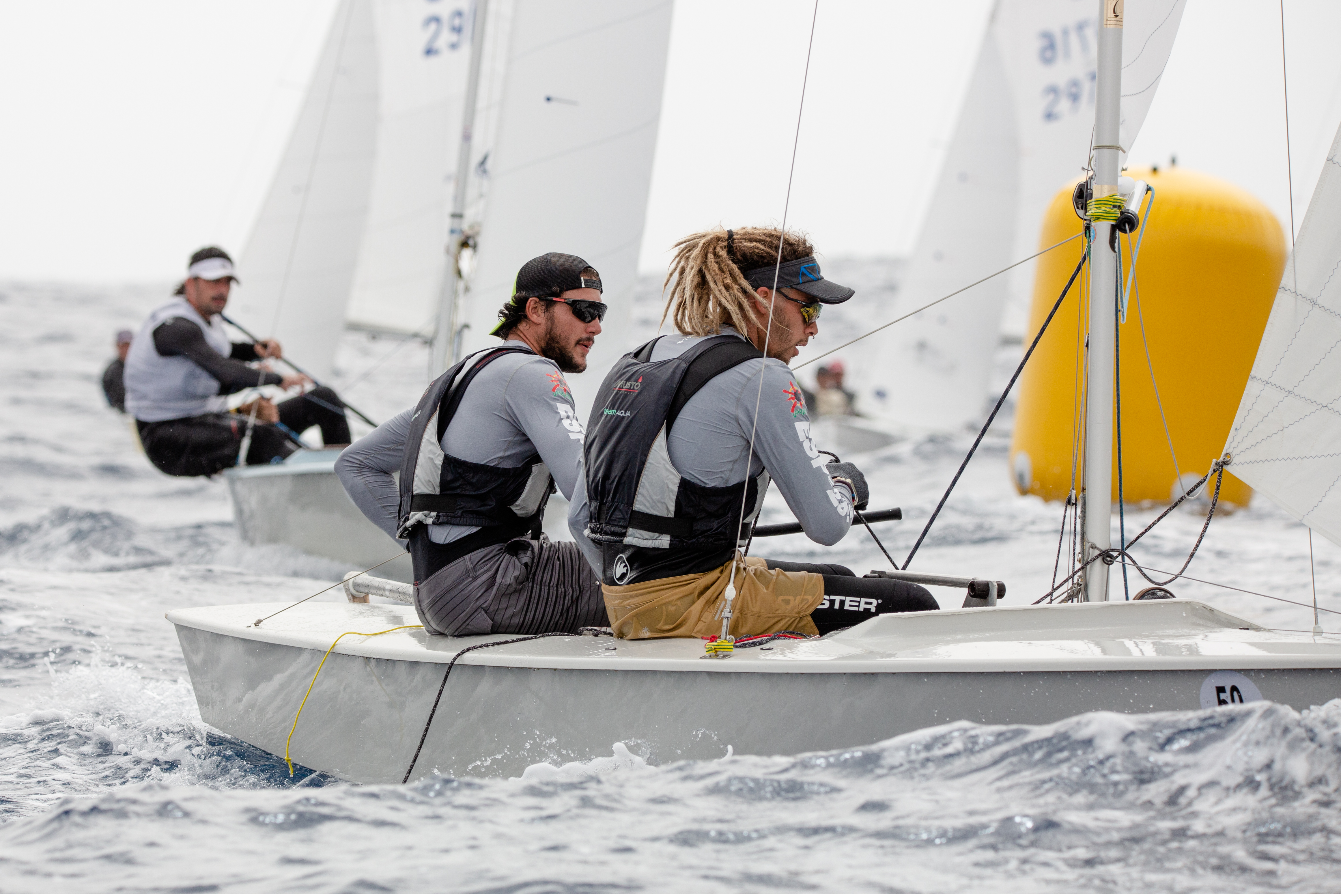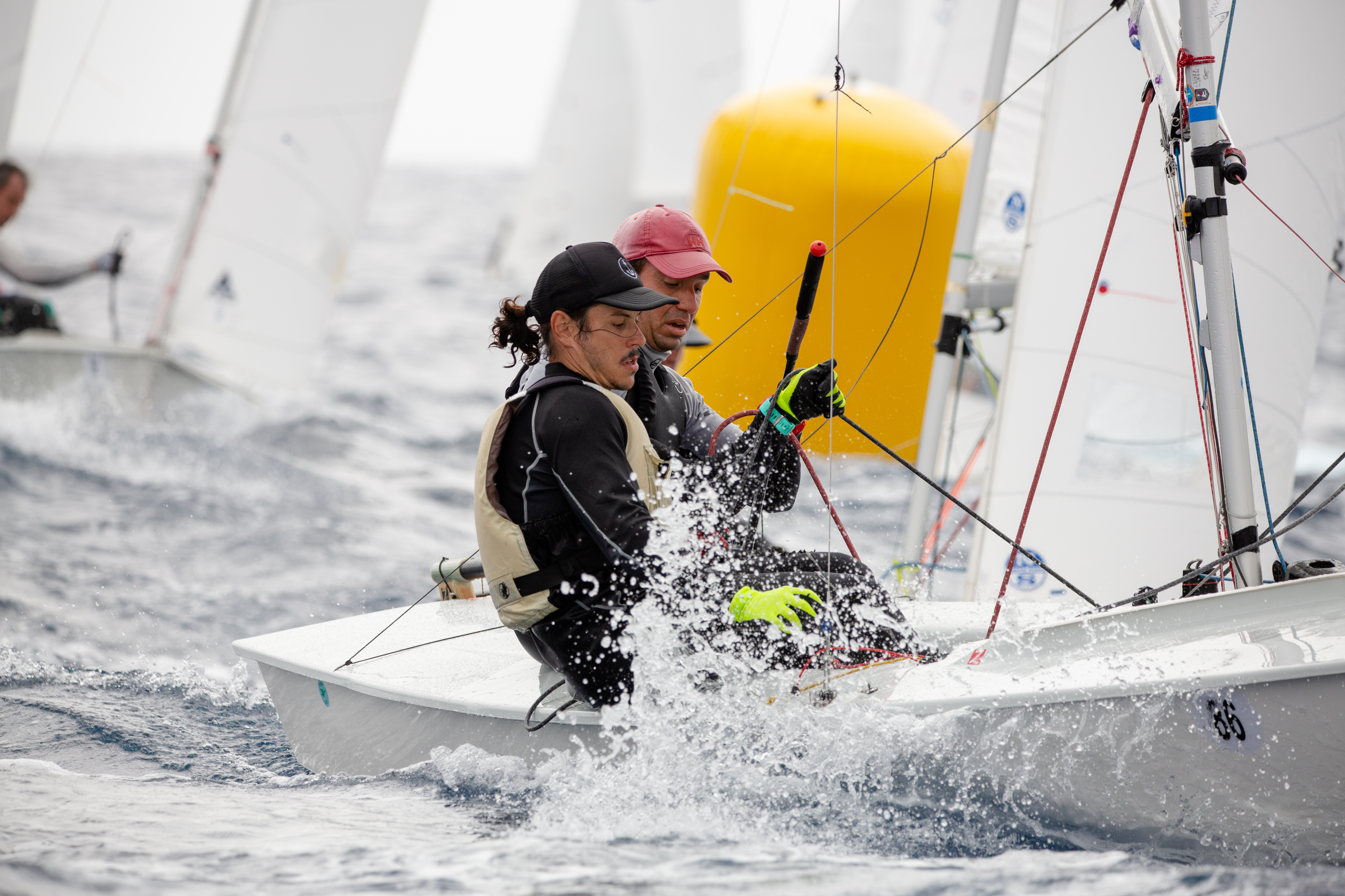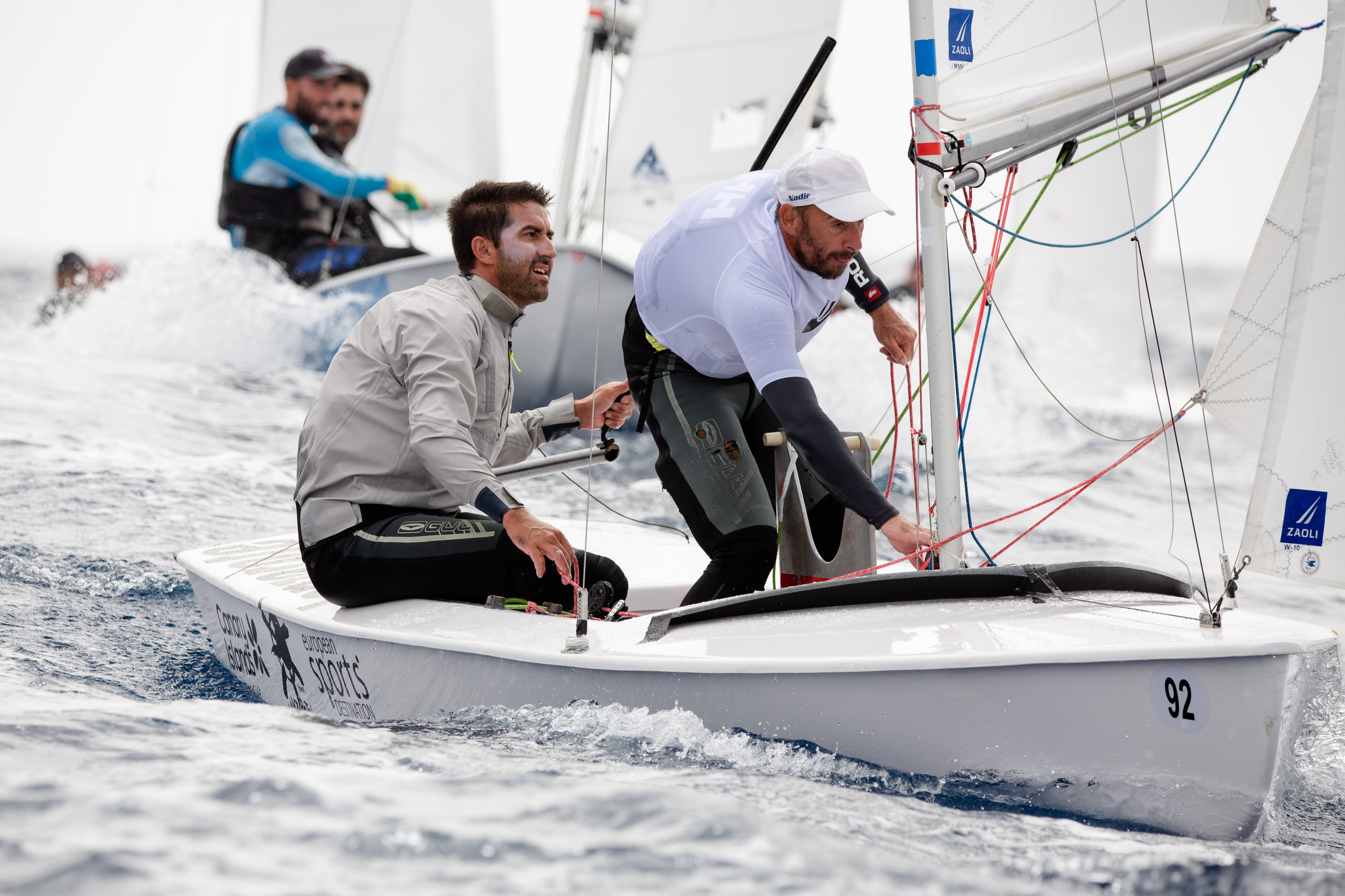 Los grancanarios y lanzaroteños están demostrando un gran nivel en esta cita nacional absoluta. Si en las dos primeras pruebas, eran las tripulaciones del club organizador los que comenzaron dominando con los hermanos del Castillo (RCNGC), actuales campeones de España, el olímpico Fernando León/ Antonio del Castillo-Olivares (RCNGC) y Joaquín Blanco/Nahuel Rodríguez (RCNGC), fue en la tercera prueba de la jornada, cuando entraron en la ecuación los lanzaroteños Alfredo González / Cristian Sánchez (RCNA), ganando la última regata (6º-2º-1º) y pasando a encabezar la provisional con dos puntos sobre Gustavo y Rafael del Castillo (1º-4º6º). En tercer lugar, Blanco / Rodríguez (9º-1º-2º) que al ganar la segunda prueba, ha encontrado su hueco en el podio provisional, dando muestras de buen navegar en esta embarcación tan diferente al ILCA7 donde este patrón ha hecho una gran campaña preolímpica.