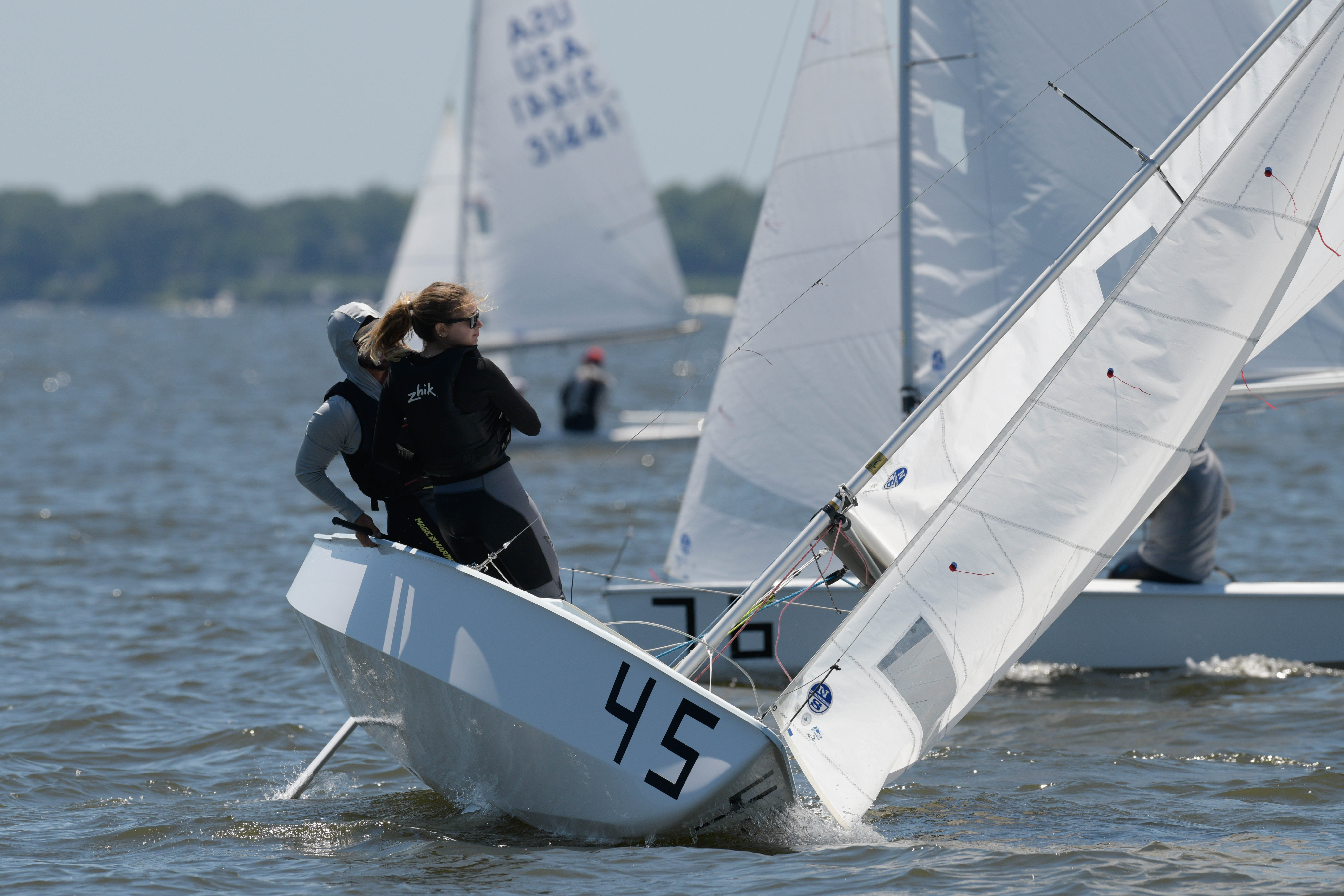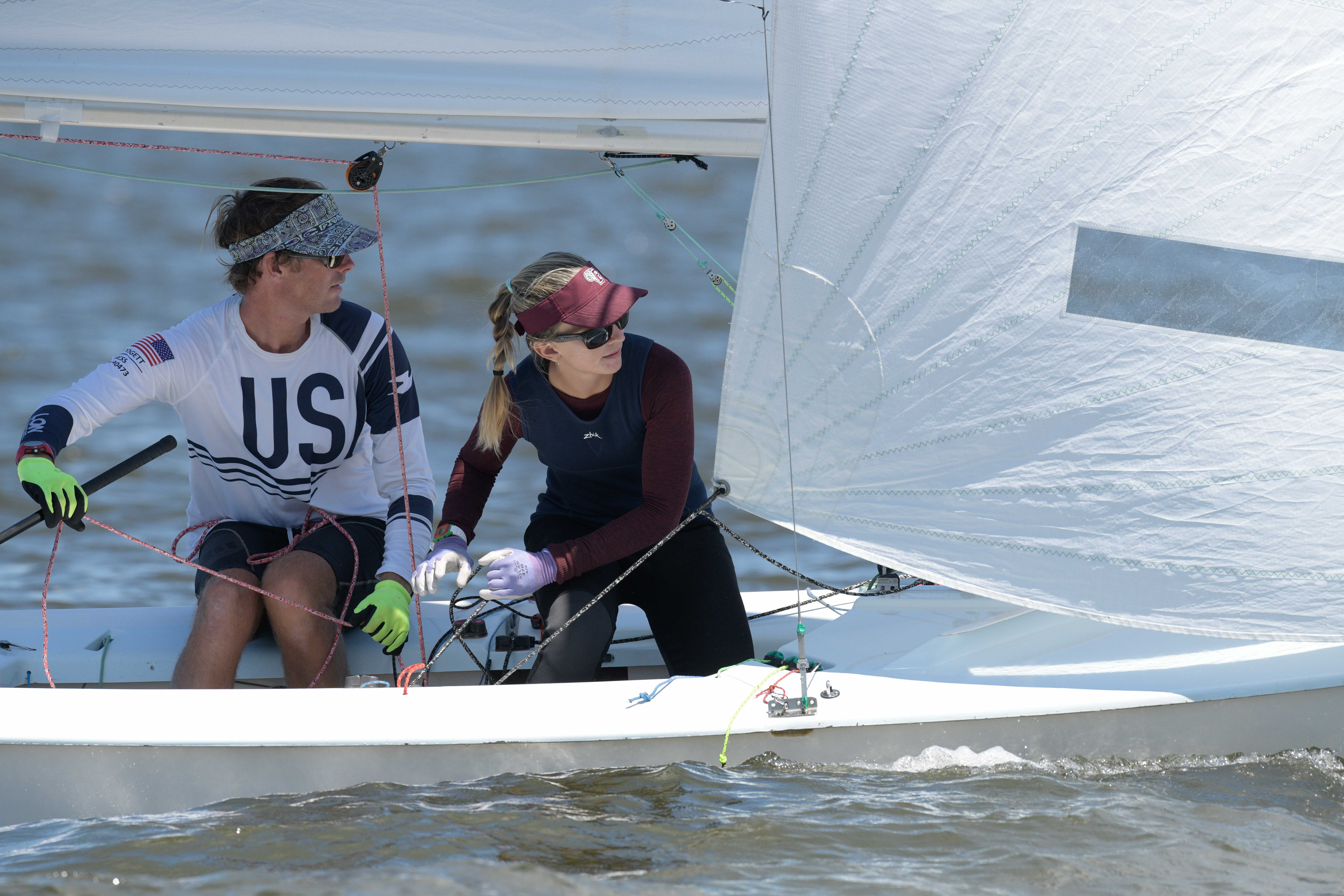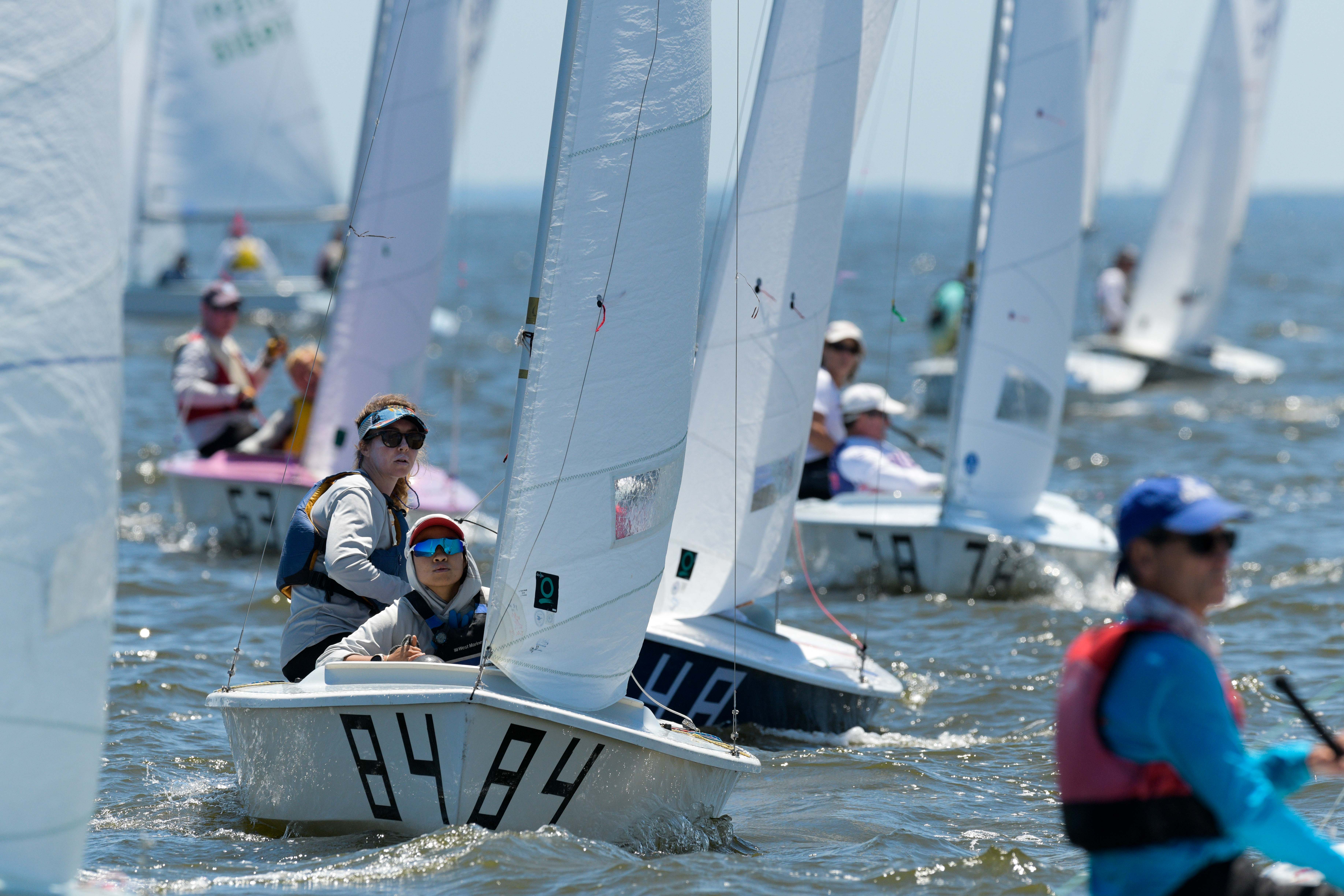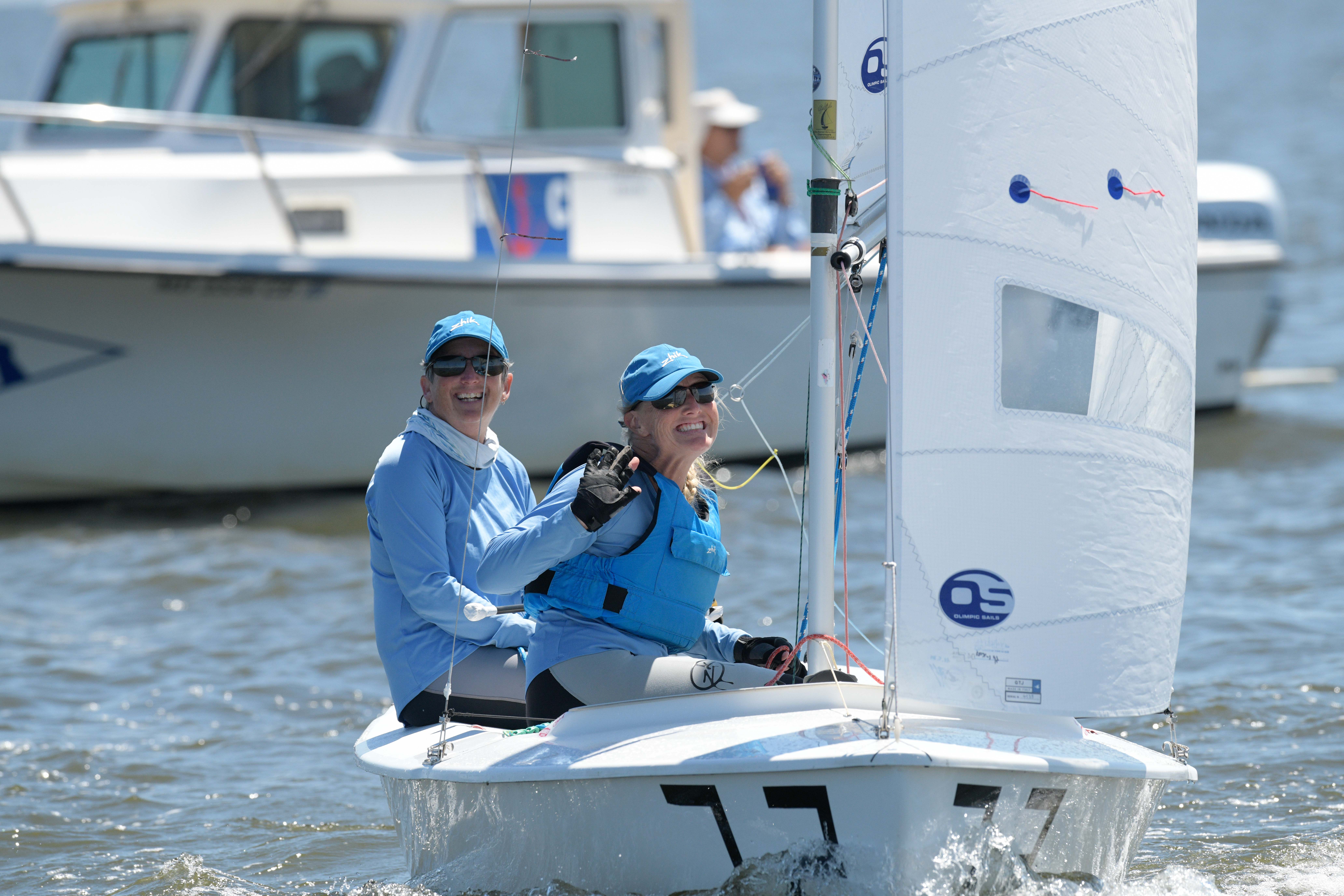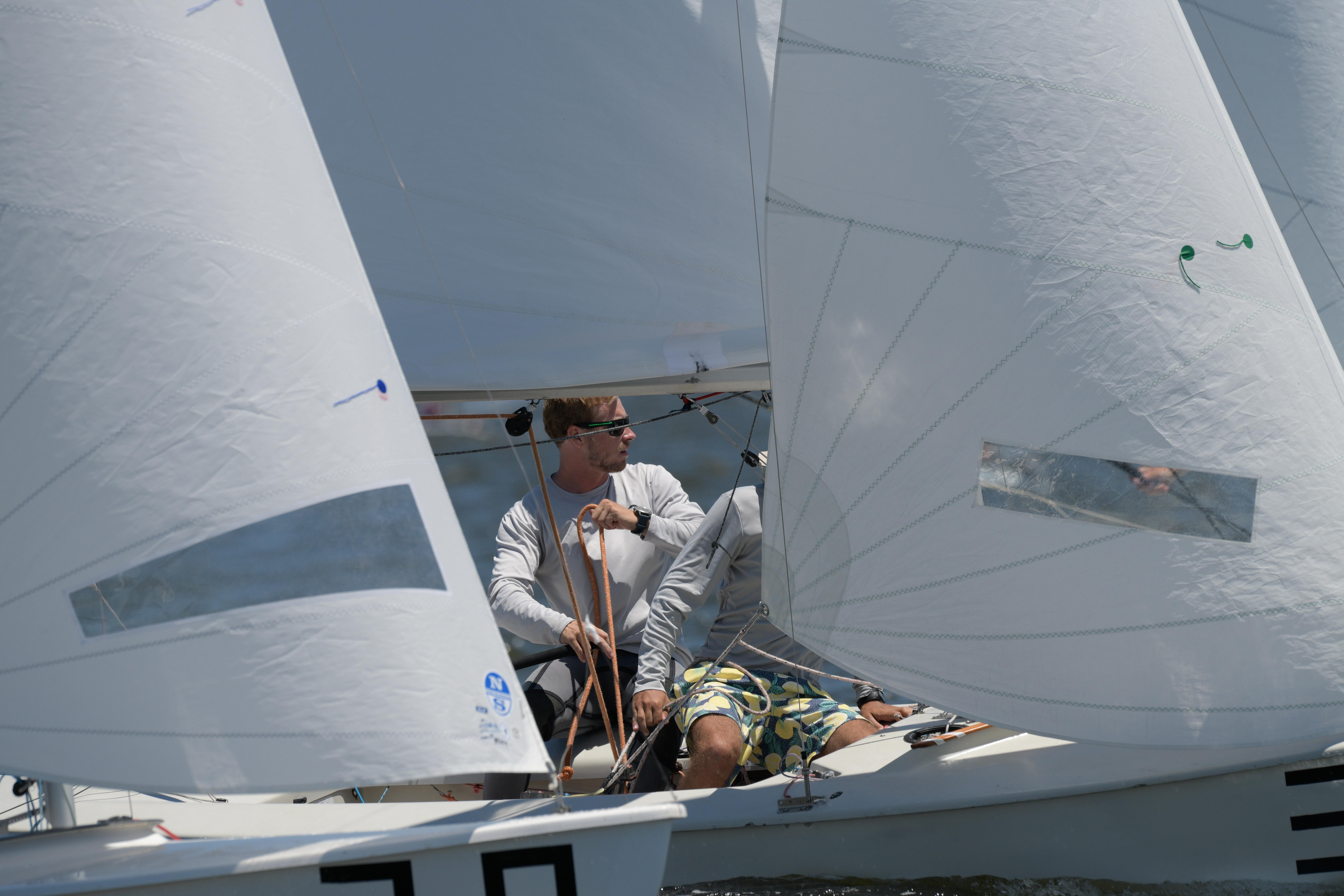 Annapolis, MS, USA, June 17, 2021. García Bringas/Smith held off Miller/Kloc and Augie Diaz/Barbie Brotons in a shifty first race. The wind direction stabilized a bit for the second race, but the wind speed didn’t, and competitors had to put a premium on connecting from puff to puff and shifting gears. Rios/Riefkohl Gonzalez topped the fleet, followed by Carol Cronin/Kim Couranz and García Bringas/Smith in the second race.