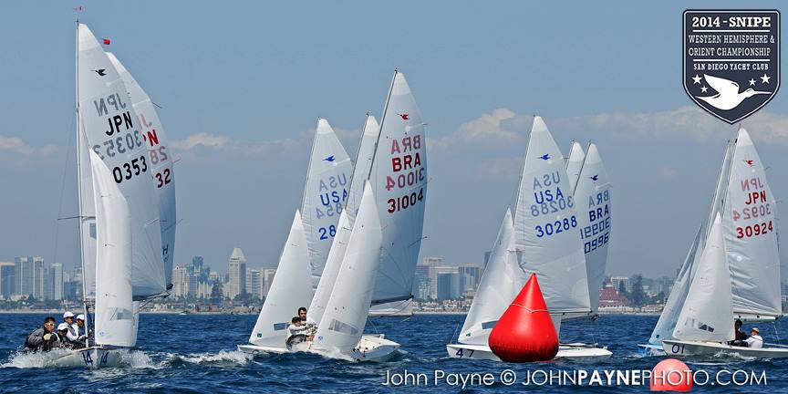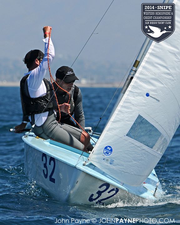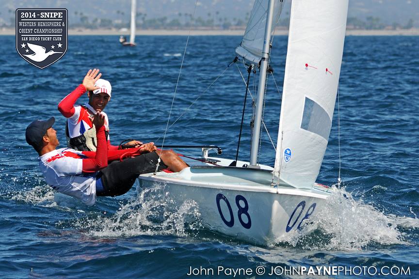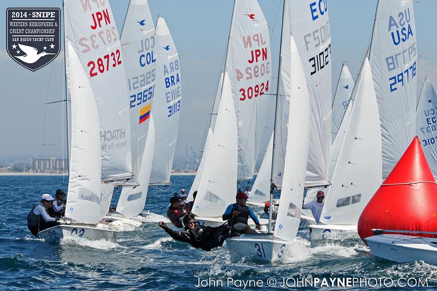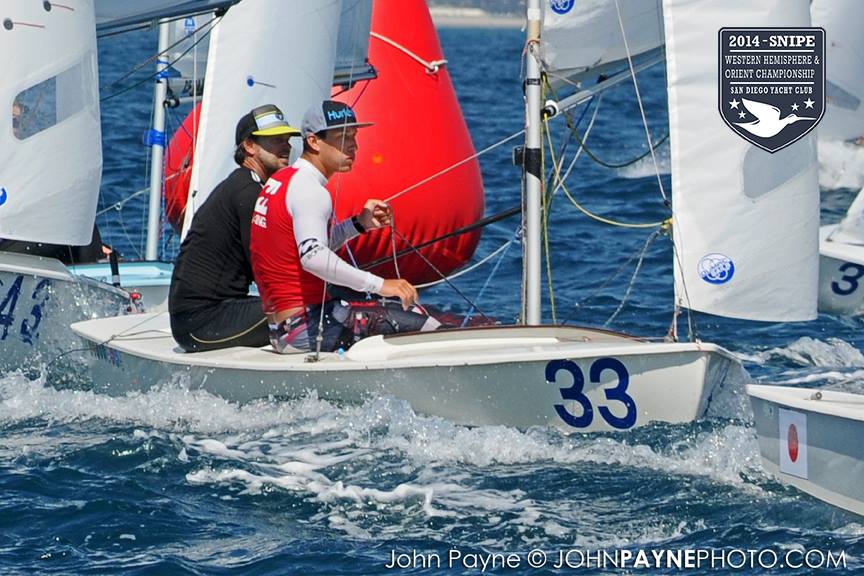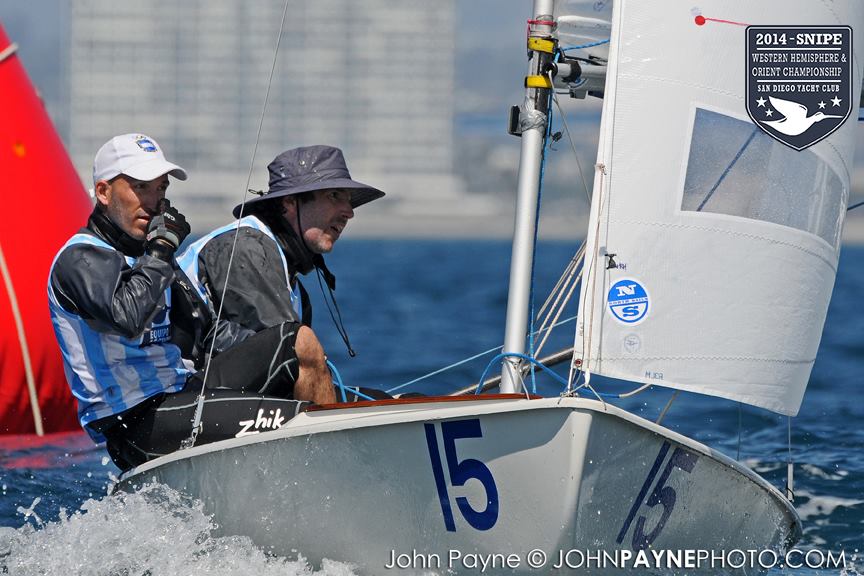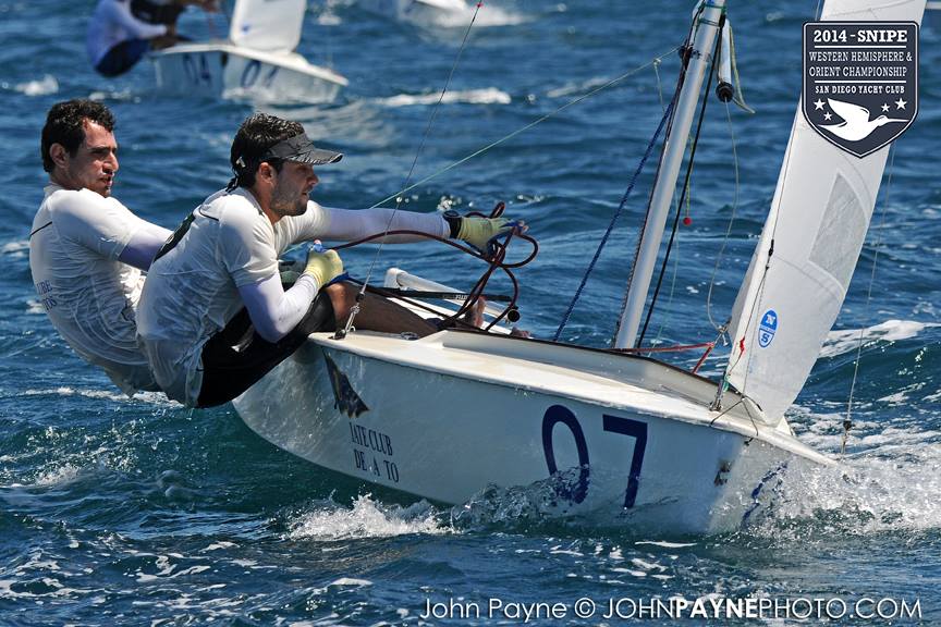 San Diego, September 10, 2014 Report by Carol Cronin Interview: Luis Soubie and Diego Mini Lipszic (Photo courtesy of John Payne) We sailed two races today in a 10-14 knot westerly that rewarded boat speed and hiking hard. The first race was a battle to the right, and it was hard to find clean air anywhere inside the starboard layline since everyone arrived at the mark at the same time. Luis Soubie/Diego Mini Lipszyc (ARG) went on to win the race, after the breeze built on the last leg to what would be the maximum for the day. A long swell overlaid with wind chop made the sailing hard, and speed was hard to come by for many teams used to flatter water. Race two surprised most of the fleet by being left-side favored. There was also a surprise winner: Raúl Faura Nieto/José Piña Nieto (CUB), whose victory brings them up to 23rd overall. The wind lightened up in the middle of the race, leaving many teams with rigs that were too tight. Those who stepped to the left side were rewarded with more pressure, in contrast to the usual local rule to "go right". After sailing, model boats were assigned to each country and the series (sailed right in front of the Yacht Club bar) was won by Team Colombia. Afterward everyone enjoyed a barbecue on the deck. Tomorrow the race committee will try for three races, in anticipation of lighter winds on Friday. Results (6 races, 1 discard) 1. PUR Raul Rios & Fernando Menllor, 12 2. ARG Luis Soubie & Diego Mini Lipszic, 16 3. BRA Breno Bianchi & Flavio de Castro, 18 4. BRA Alexandre Tinoco & Alexandre Niedrerauer, 40 5. JPN Rychei Doi & Keiichiro Itagaki, 45 ... full results, photos and videos ...