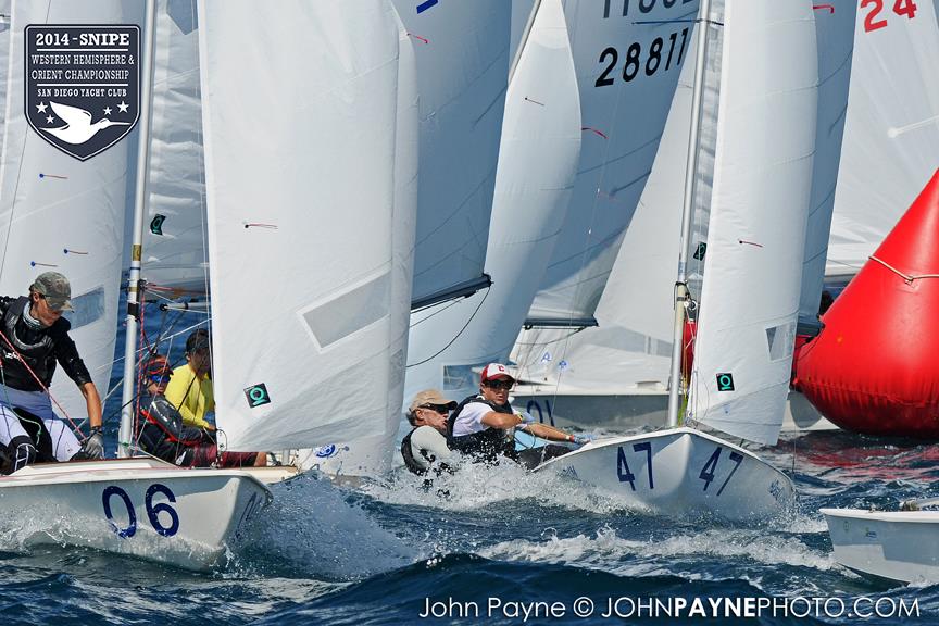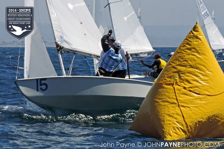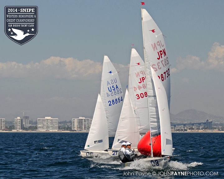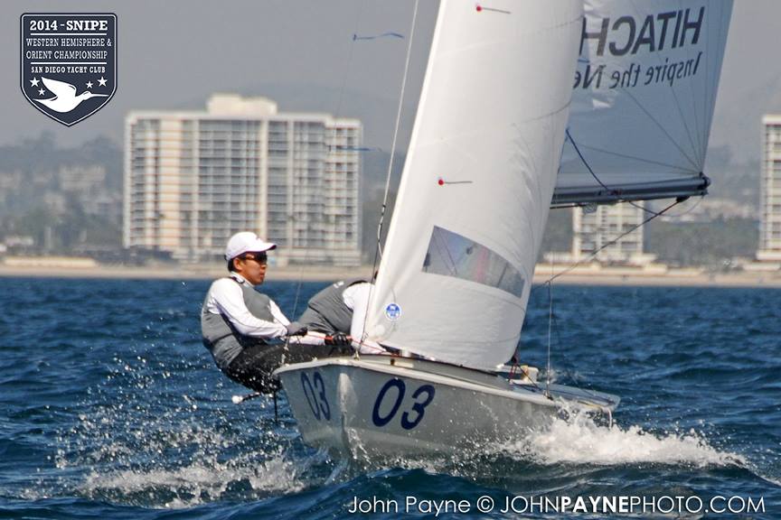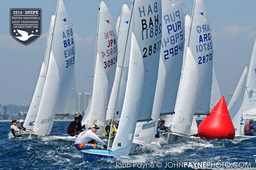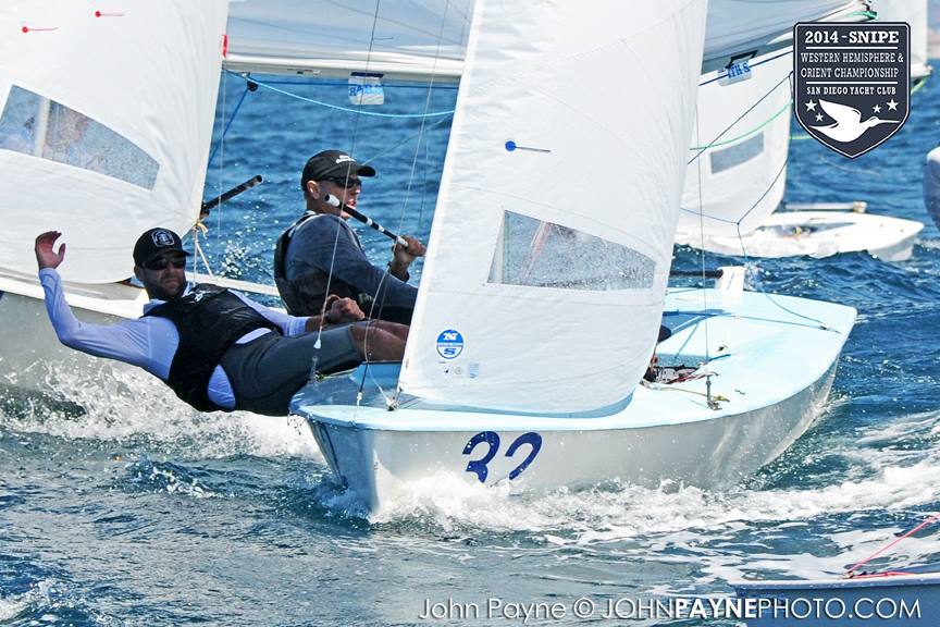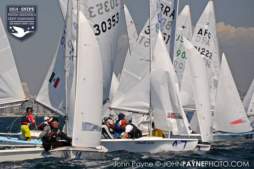 San Diego, September 10, 2014 Report by Carol Cronin Interview: Luis Soubie and Diego Mini Lipszic (Photo courtesy of John Payne) We sailed two races today in a 10-14 knot westerly that rewarded boat speed and hiking hard. The first race was a battle to the right, and it was hard to find clean air anywhere inside the starboard layline since everyone arrived at the mark at the same time. Luis Soubie/Diego Mini Lipszyc (ARG) went on to win the race, after the breeze built on the last leg to what would be the maximum for the day. A long swell overlaid with wind chop made the sailing hard, and speed was hard to come by for many teams used to flatter water. Race two surprised most of the fleet by being left-side favored. There was also a surprise winner: Raúl Faura Nieto/José Piña Nieto (CUB), whose victory brings them up to 23rd overall. The wind lightened up in the middle of the race, leaving many teams with rigs that were too tight. Those who stepped to the left side were rewarded with more pressure, in contrast to the usual local rule to "go right". After sailing, model boats were assigned to each country and the series (sailed right in front of the Yacht Club bar) was won by Team Colombia. Afterward everyone enjoyed a barbecue on the deck. Tomorrow the race committee will try for three races, in anticipation of lighter winds on Friday. Results (6 races, 1 discard) 1. PUR Raul Rios & Fernando Menllor, 12 2. ARG Luis Soubie & Diego Mini Lipszic, 16 3. BRA Breno Bianchi & Flavio de Castro, 18 4. BRA Alexandre Tinoco & Alexandre Niedrerauer, 40 5. JPN Rychei Doi & Keiichiro Itagaki, 45 ... full results, photos and videos ...