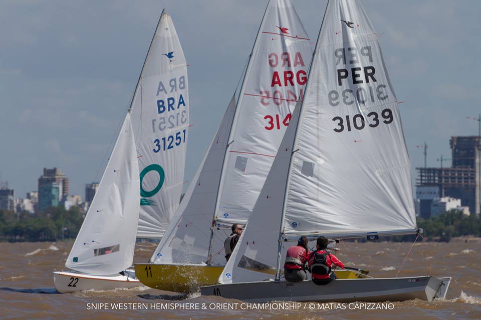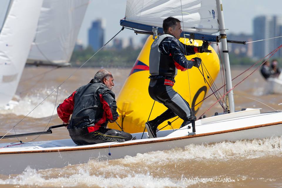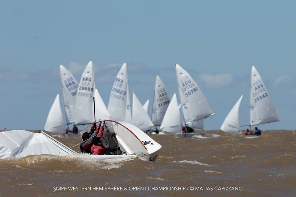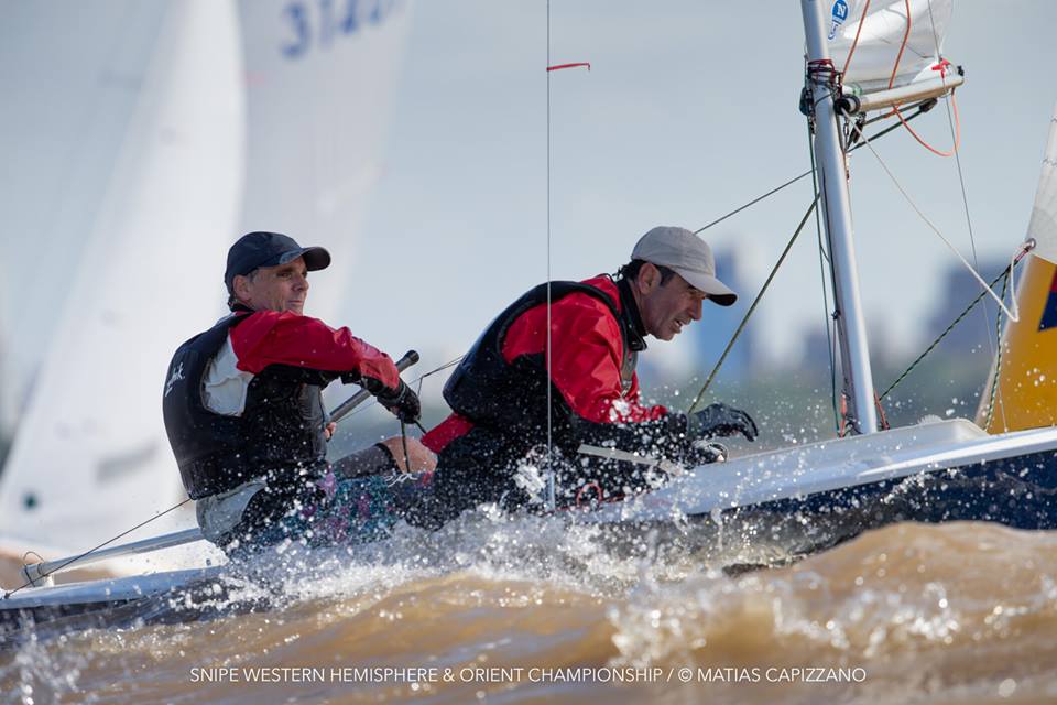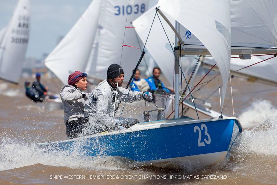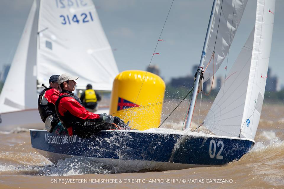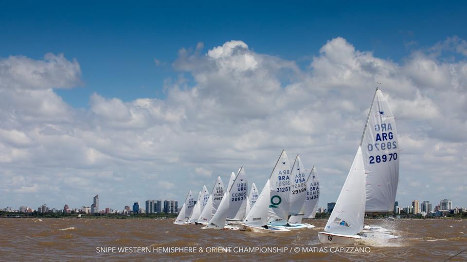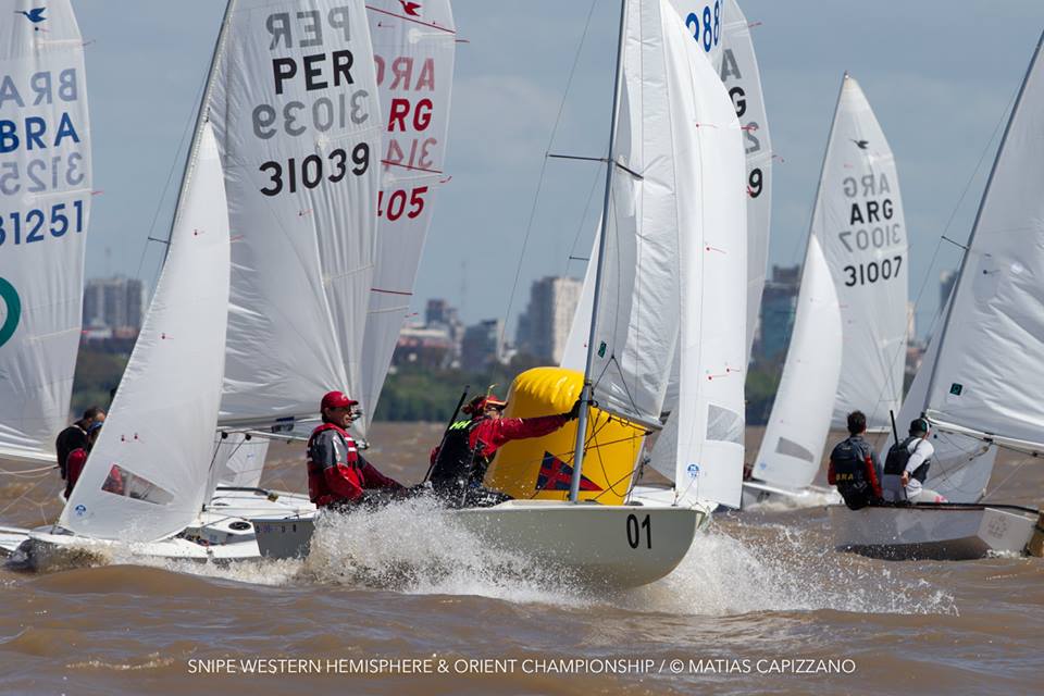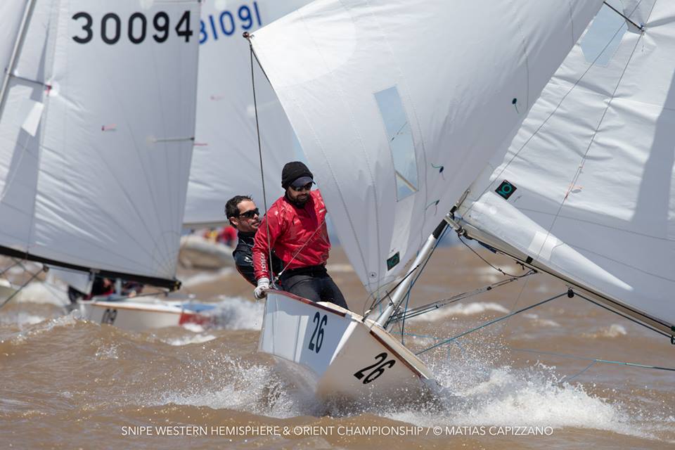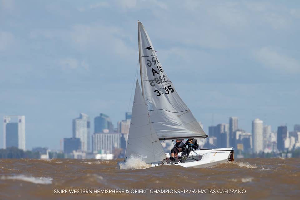 The 2018 Western Hemisphere & Orient Championship of the International Snipe Class kicked off on the water today, October 23rd, in Buenos Aires with two races sailed in quite windy conditions. 15-18 knots gusting up to 20 created some thrilling starts with a couple of general recalls and a zulu flag start and mark rounding on the Olivos racecourse.