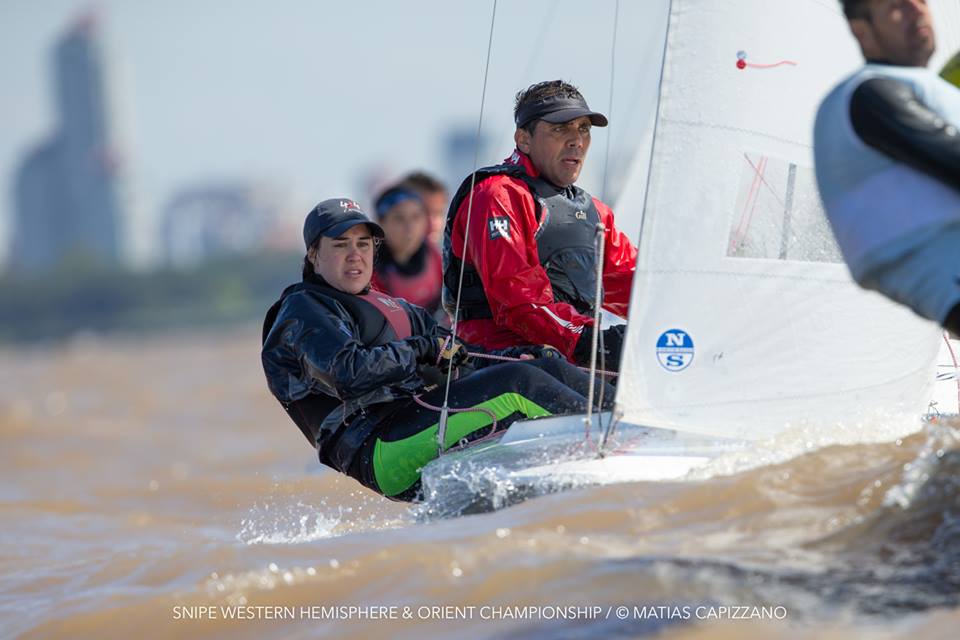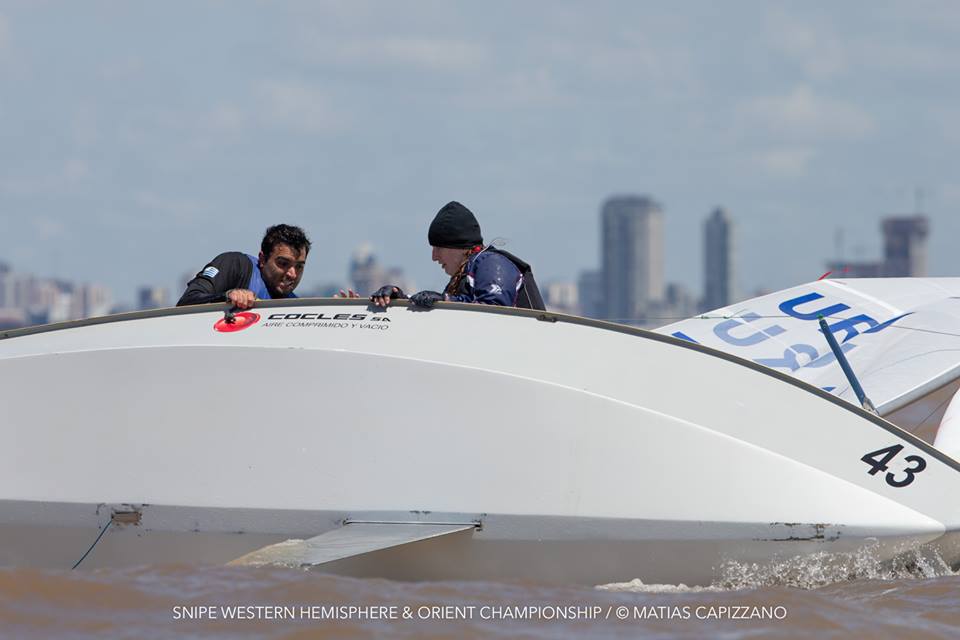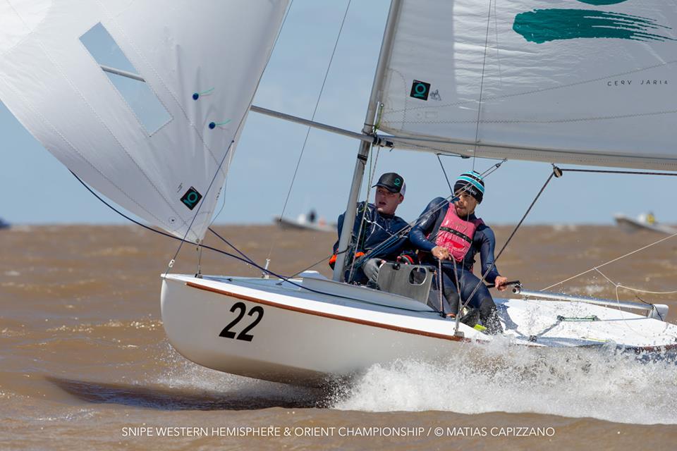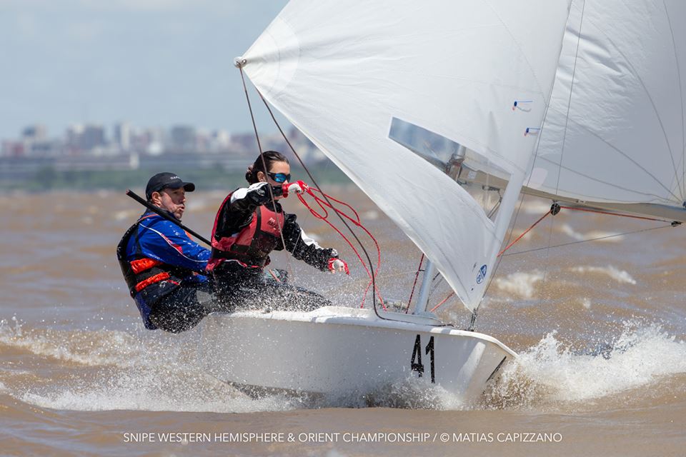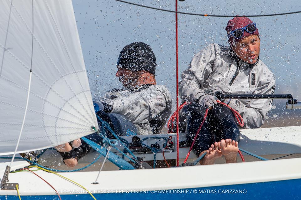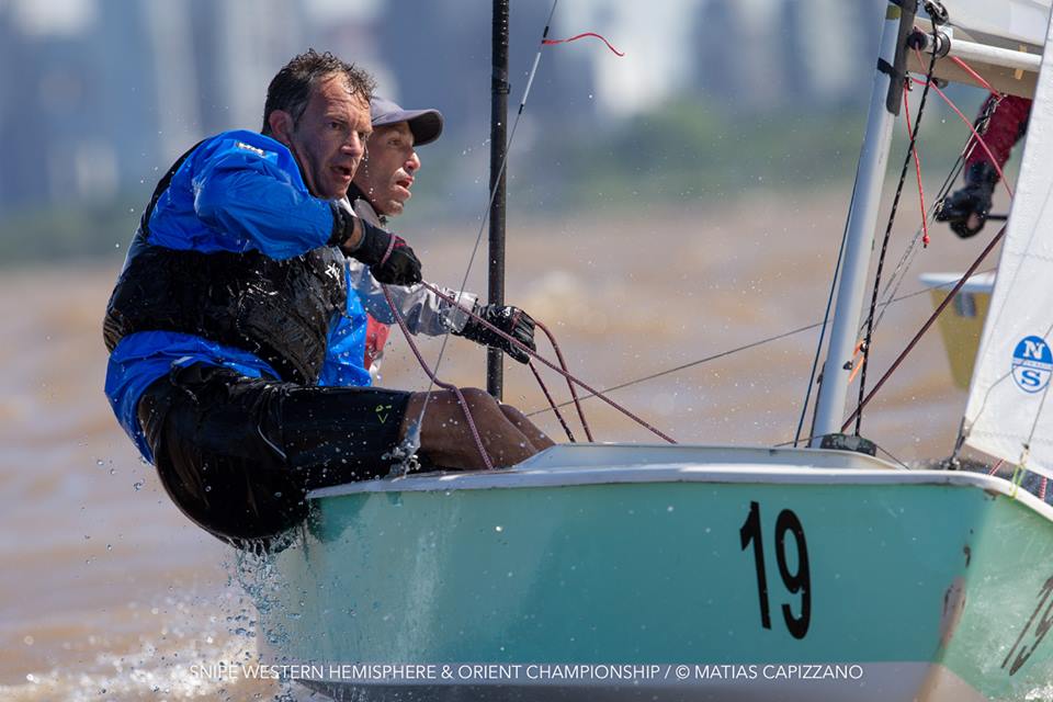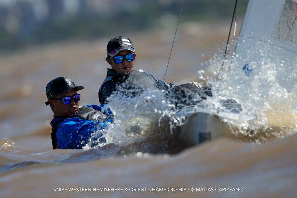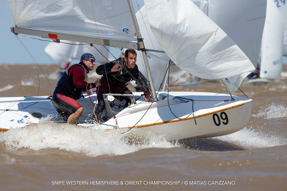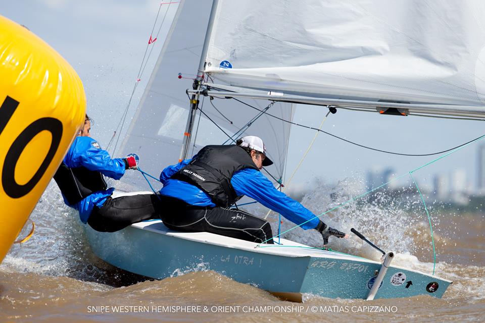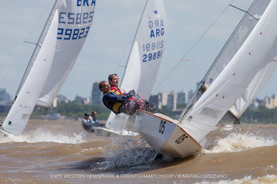 The 2018 Western Hemisphere & Orient Championship of the International Snipe Class kicked off on the water today, October 23rd, in Buenos Aires with two races sailed in quite windy conditions. 15-18 knots gusting up to 20 created some thrilling starts with a couple of general recalls and a zulu flag start and mark rounding on the Olivos racecourse.