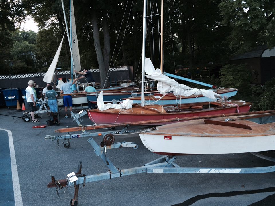 24 boats, including several woodies, sailed in light air on mystic lake today. Top 3 after 2 races:
