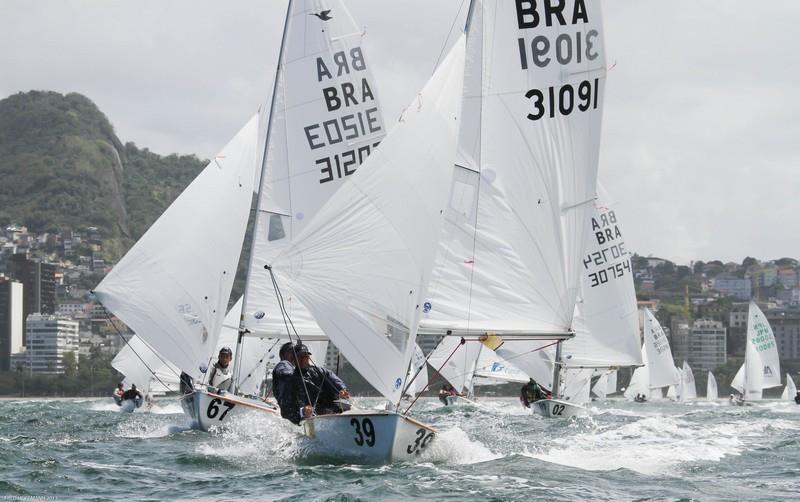 Many sailors supposed that the race was to be postponed and went behind the Escola Naval (Navy Accademy) for covering from the big gusts. It seemed exactly the same as the day before. But the RC didn’t hoist the AP flag, so the race started on time. Less than 30 boats were able to reach the line and start in time and a few more were able to start inside the 5 minute time limit after the start. During the first beat and the following legs other boats entered in the race course and completed the course, although they didn’t start.