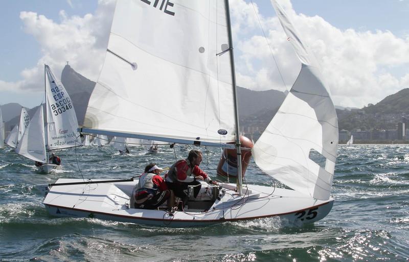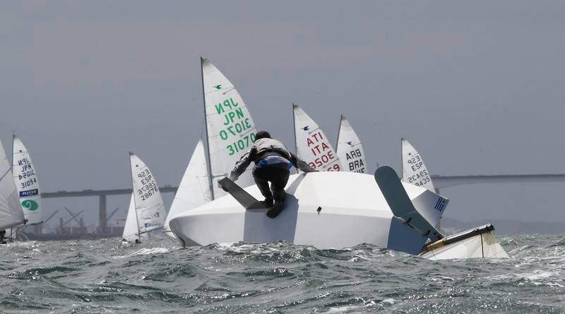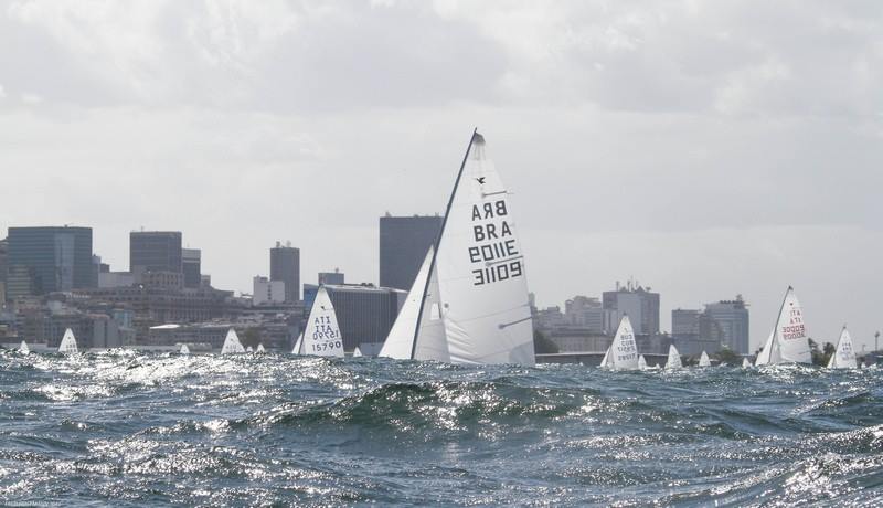 The RC planned to sail three races for the fourth day of the Snipe World Championship. The forecast was for SW wind of 10-15 knots, but when the boats, going to the race course, arrived close to the Playa do Flamengo, big gusts approached the fleet at around 25-30 knots.