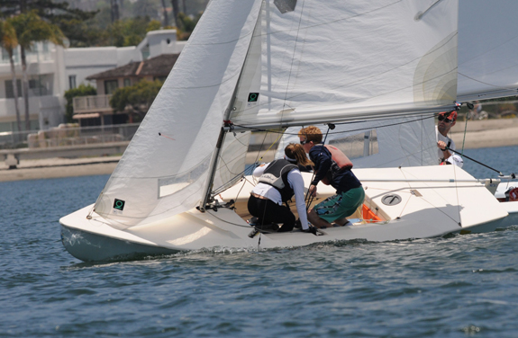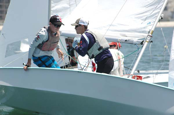 Mission Bay, May, 19-20, 2012. The 2012 Herb Shear invitational was a fantastic event for Fleet 495! With 23 boats on the water, the roster was a perfect blend of seasoned veterans, coaches, sailmakers, womens teams, and an exciting group of junior sailors! Two days of highly technical racing in 7-11 knots of flat water racing kept exactly everybody in the mix and it was easy to make or lose ten boats in one shift!