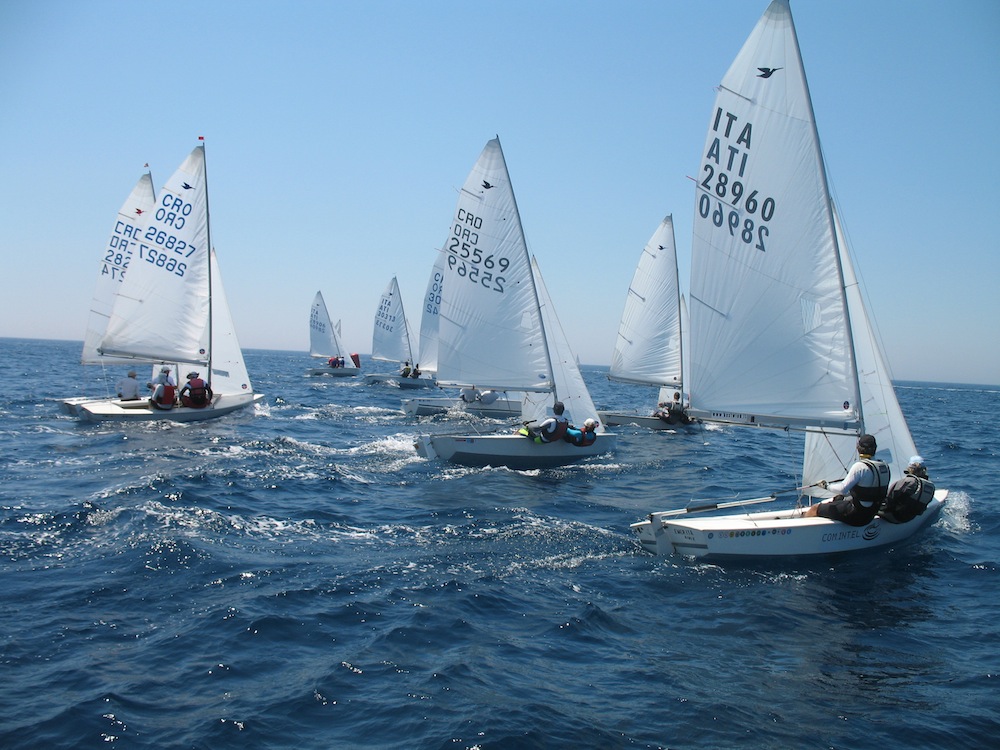 Pula, June 16-17, 2012. 3. Snipe Open 2012. 10 boats on the starting line on June the 16th. Four from Associazione velica Trentina lead by the president Herberth Hoerterich, three boats from the area of Rijeka led by the secretary of the Croatian Snipe class Damir Vranic, and three boats from the two local clubs here in Pula, two from JK Delfin and one from the hosting club JK Uljanik Plovidba.