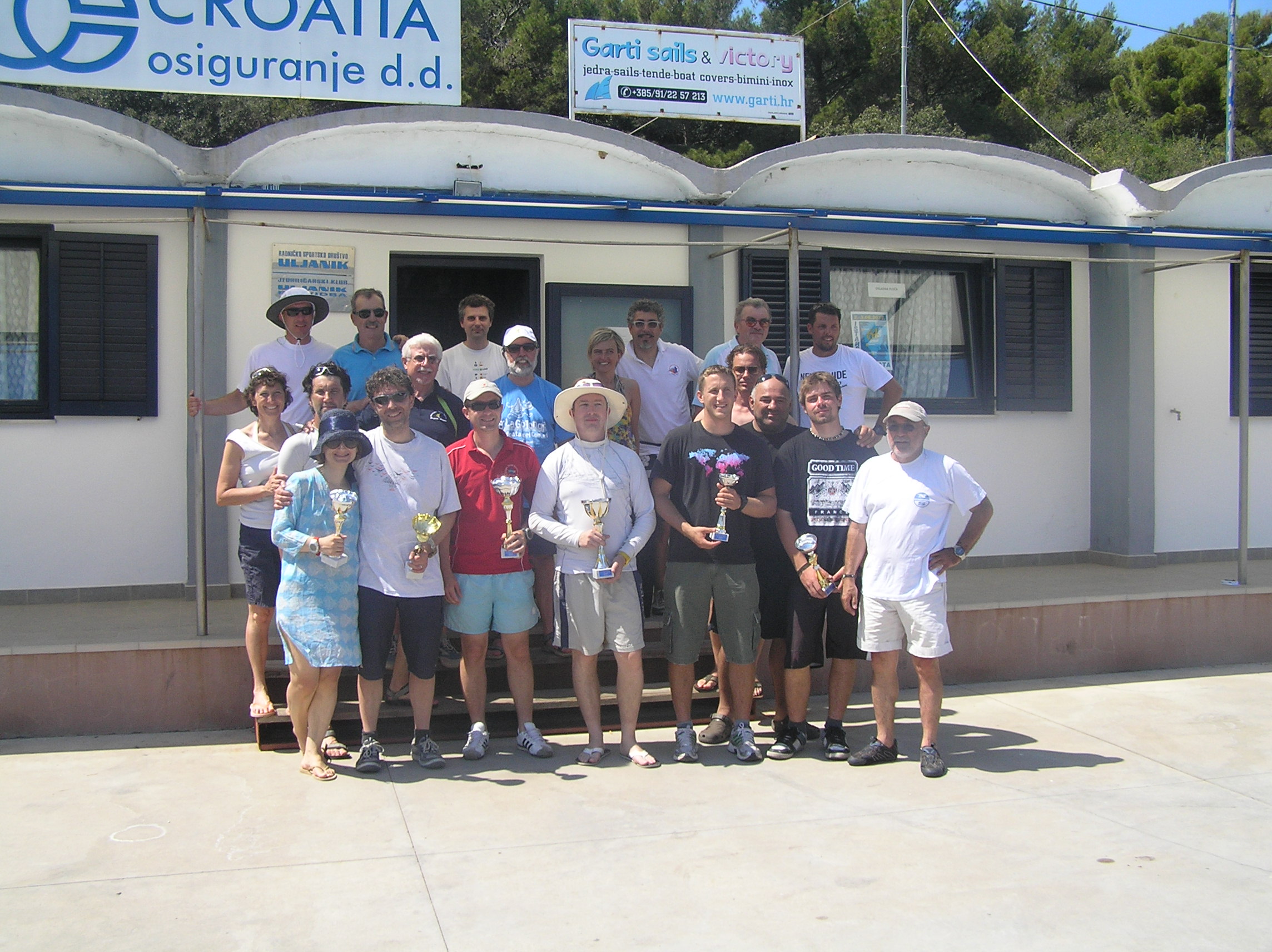 Three races on the first day with mistral of 10 -11Kn, sunny and warm. The races started at 12:00 and by 15:30 everybody was back ashore.